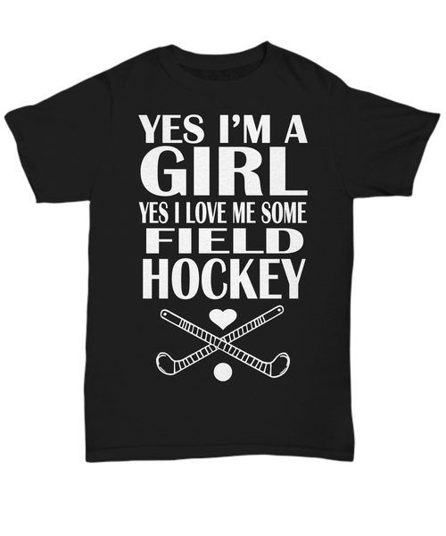 Women and Men Tee Shirt T-Shirt Hoodie Sweatshirt Yes I'm A Girl Yes I Love Me Some Field Hockey
