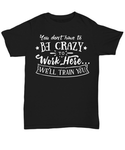 Women and Men Tee Shirt T-Shirt Hoodie Sweatshirt You Don't Have To Be Crazy To Work Here We'll Train You