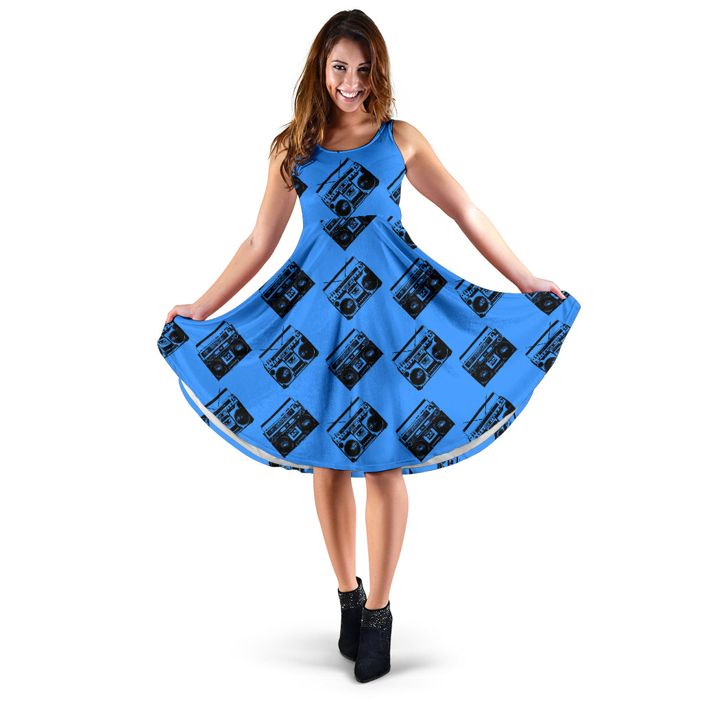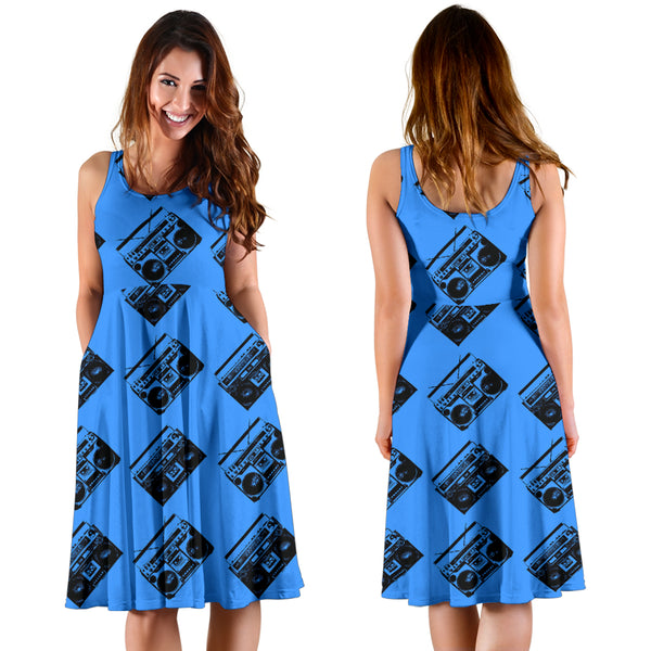 Women's Dress, No Sleeves, Custom Dress, Midi Dress, 80s Boombox 01