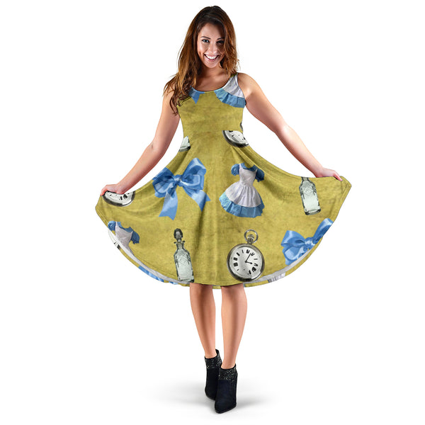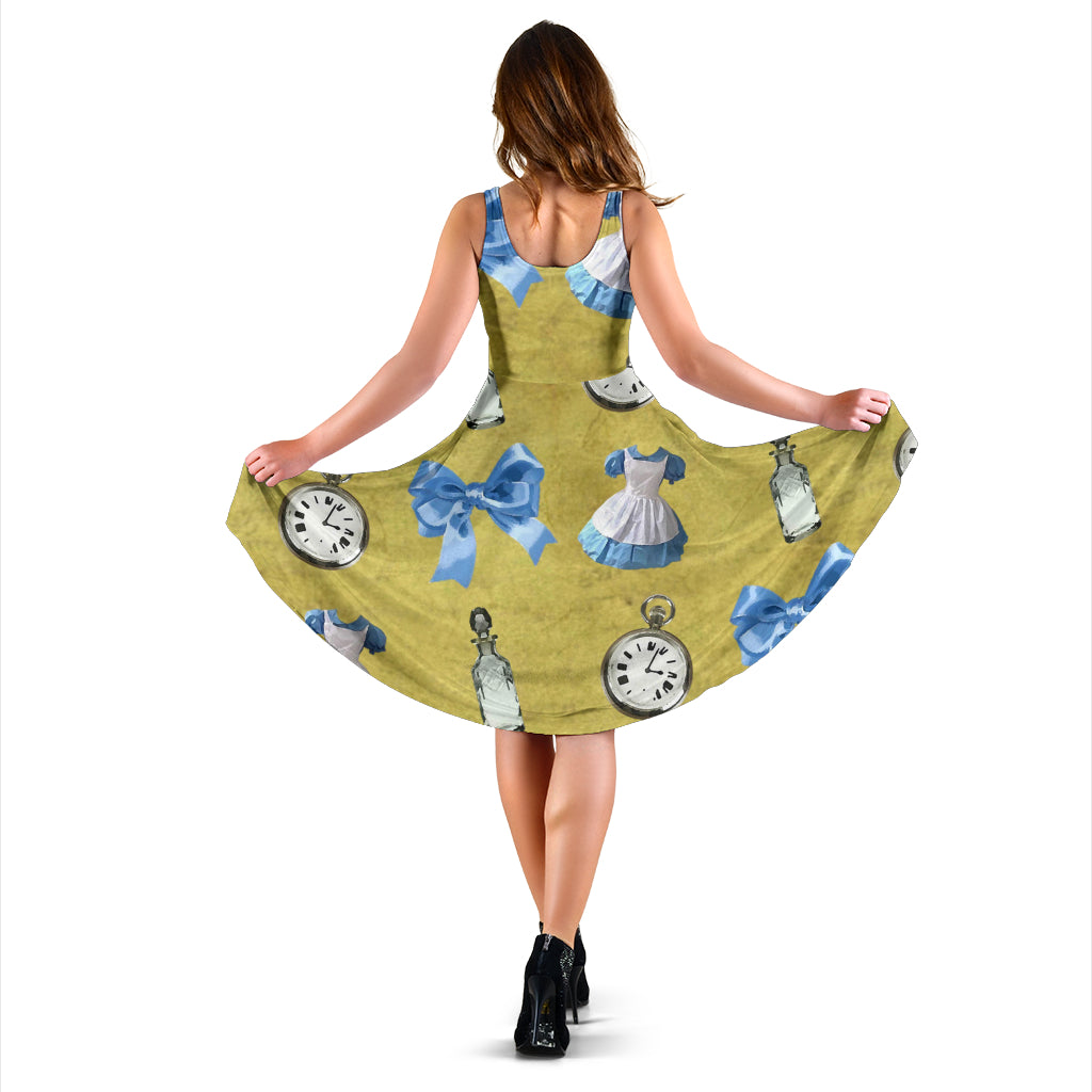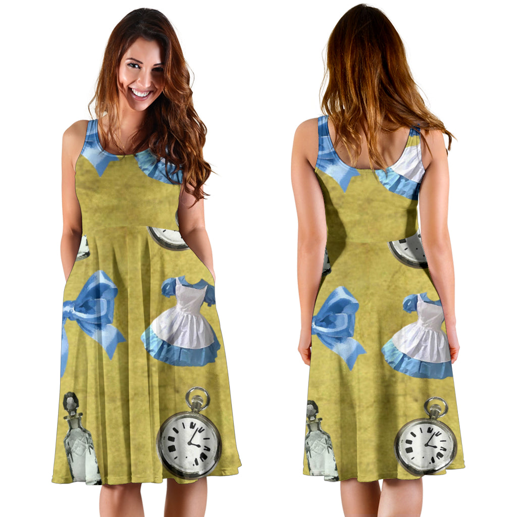 Women's Dress, No Sleeves, Custom Dress, Midi Dress, Alice In Wonderland 2 Alice Paper 02