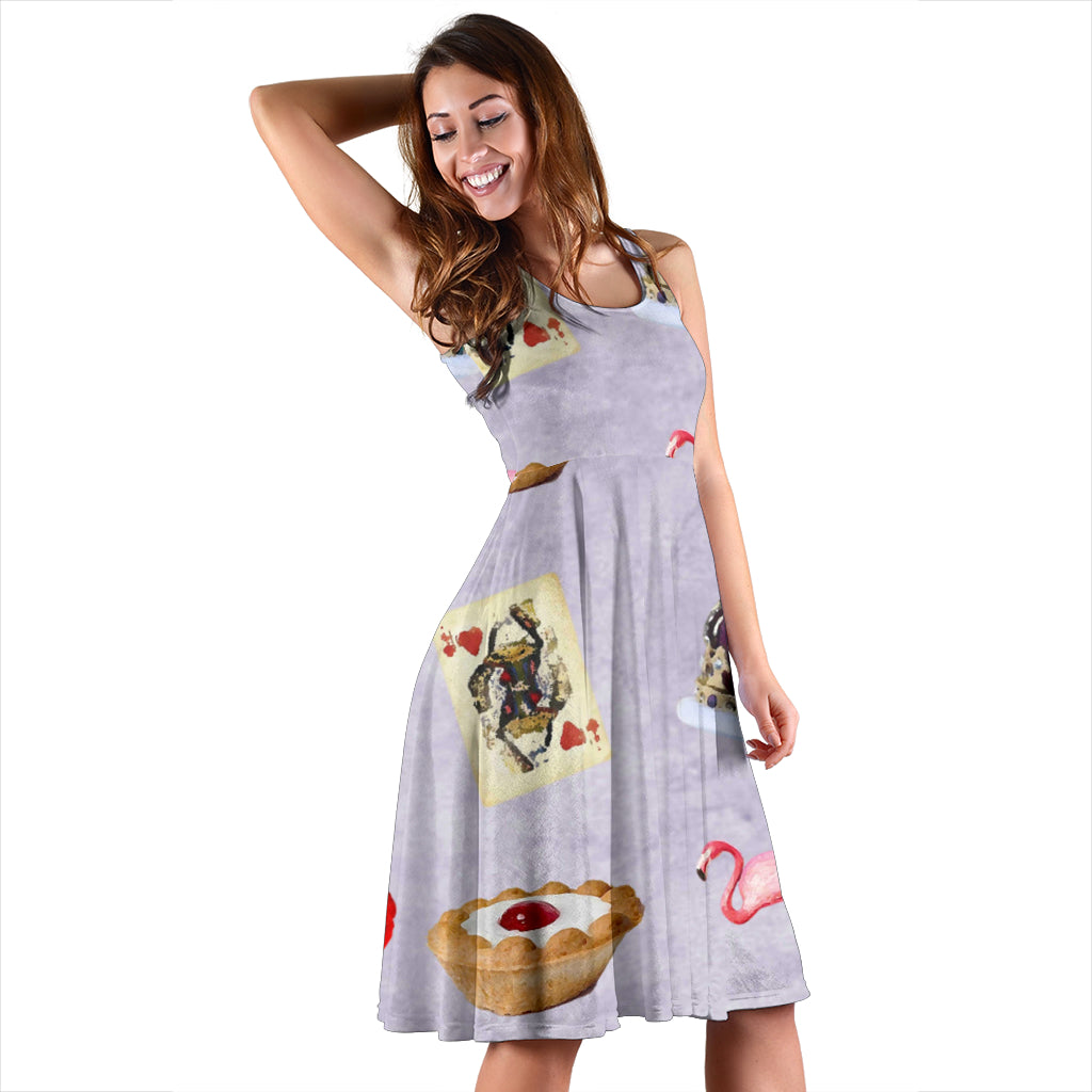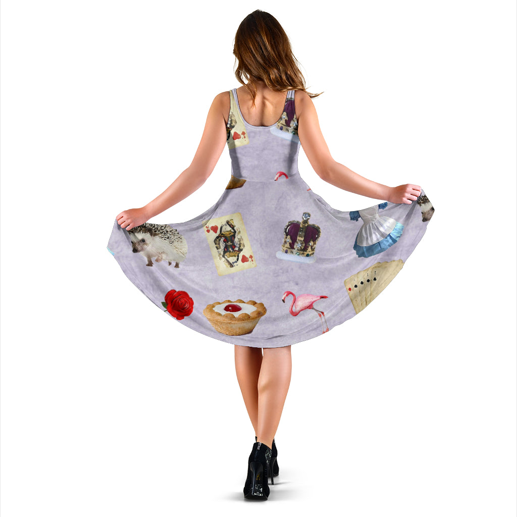 Women's Dress, No Sleeves, Custom Dress, Midi Dress, Alice In Wonderland 2 Alice Paper 06