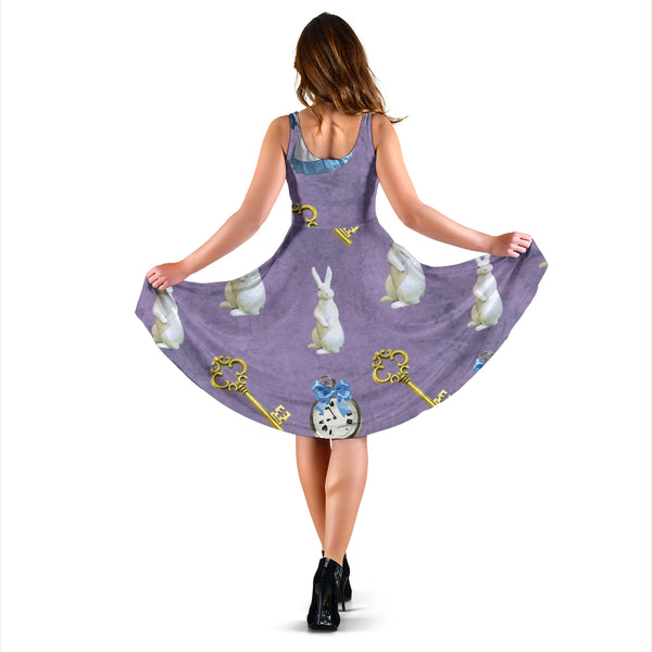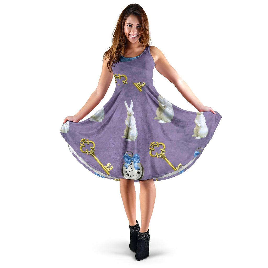 Women's Dress, No Sleeves, Custom Dress, Midi Dress, Alice In Wonderland 2 Alice Paper 09