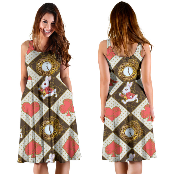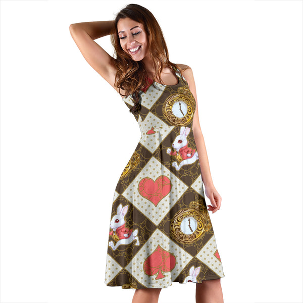 Women's Dress, No Sleeves, Custom Dress, Midi Dress, Alice In Wonderland 3-07