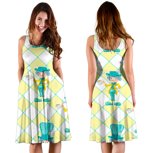 Women's Dress, No Sleeves, Custom Dress, Midi Dress, Alice In Wonderland 4-14