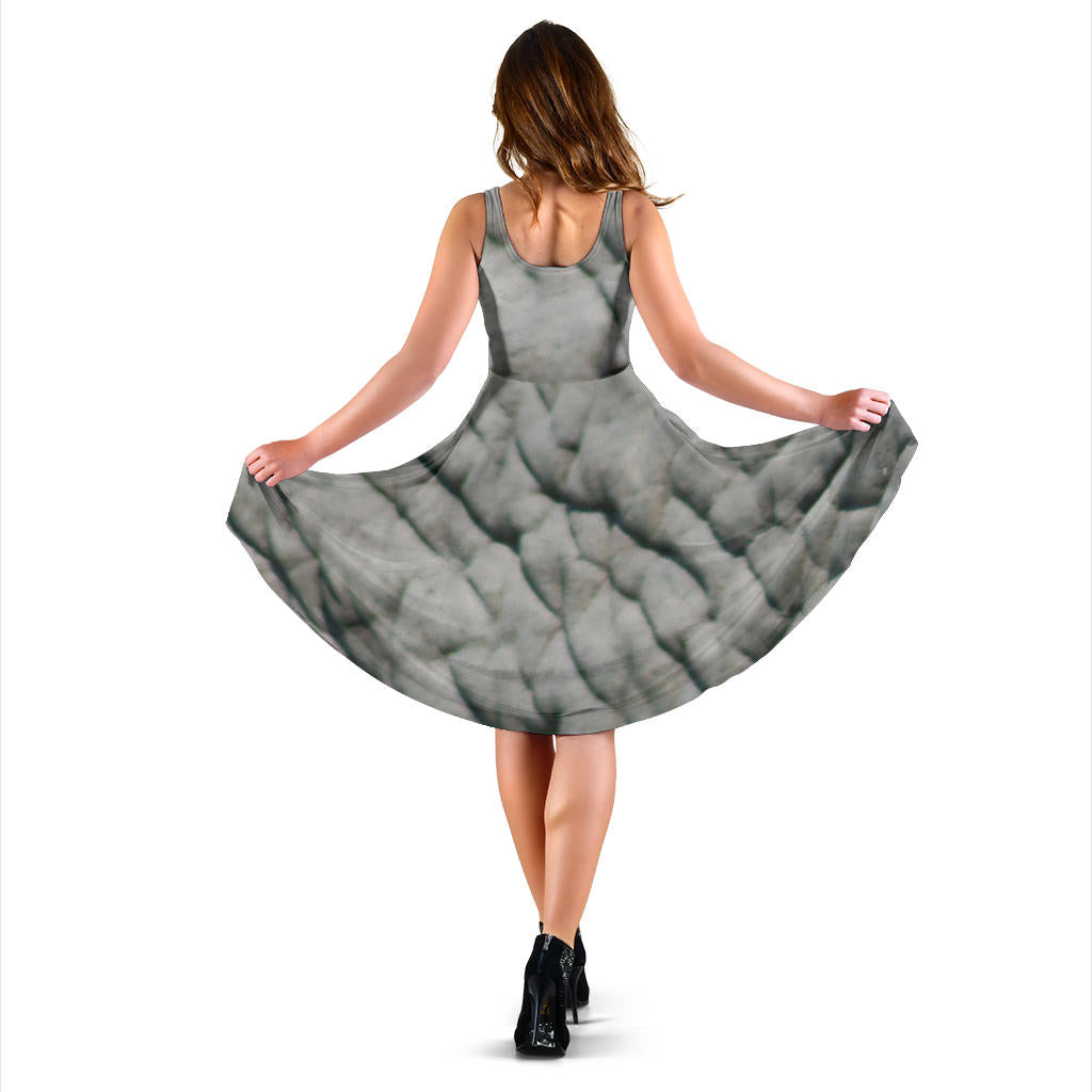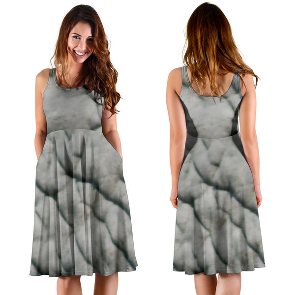 Women's Dress, No Sleeves, Custom Dress, Midi Dress, Animal Skin Texture 1-08