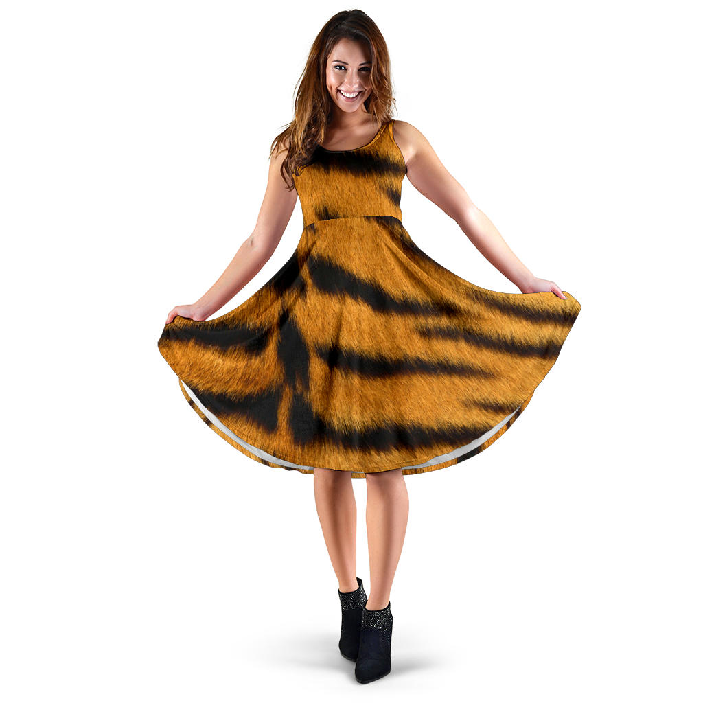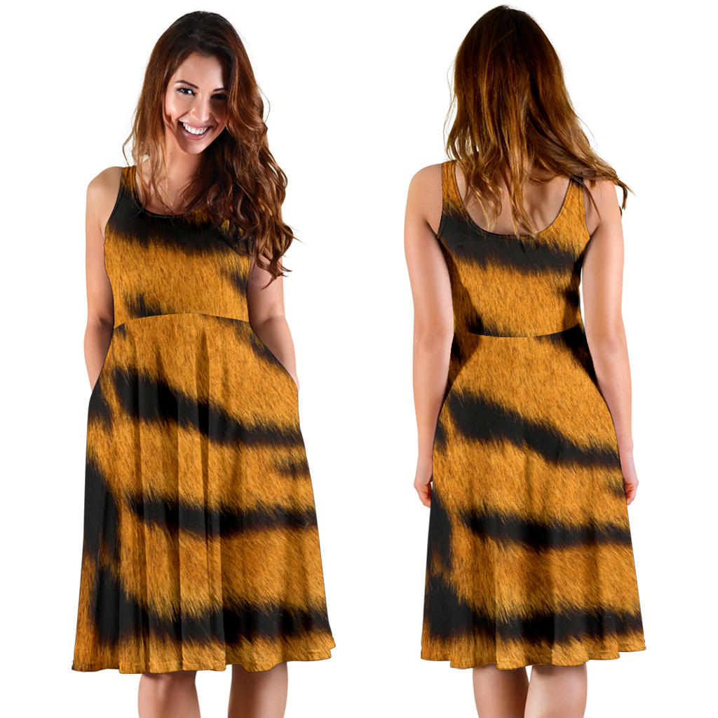 Women's Dress, No Sleeves, Custom Dress, Midi Dress, Animal Skin Texture 1-10