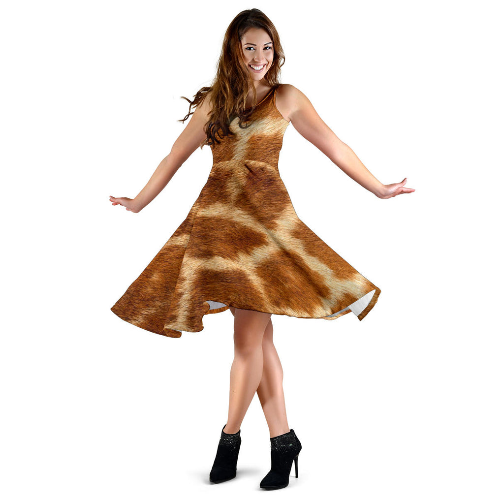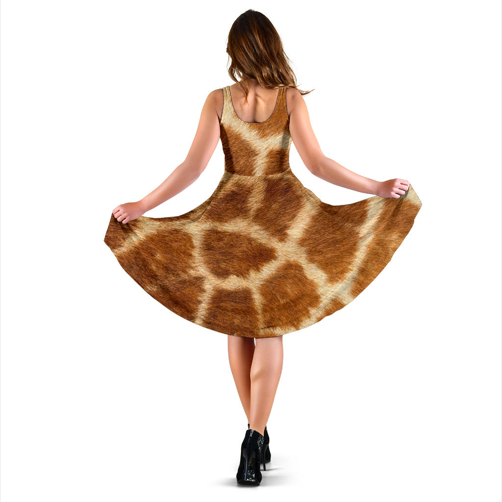Women's Dress, No Sleeves, Custom Dress, Midi Dress, Animal Skin Texture 1-11