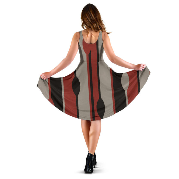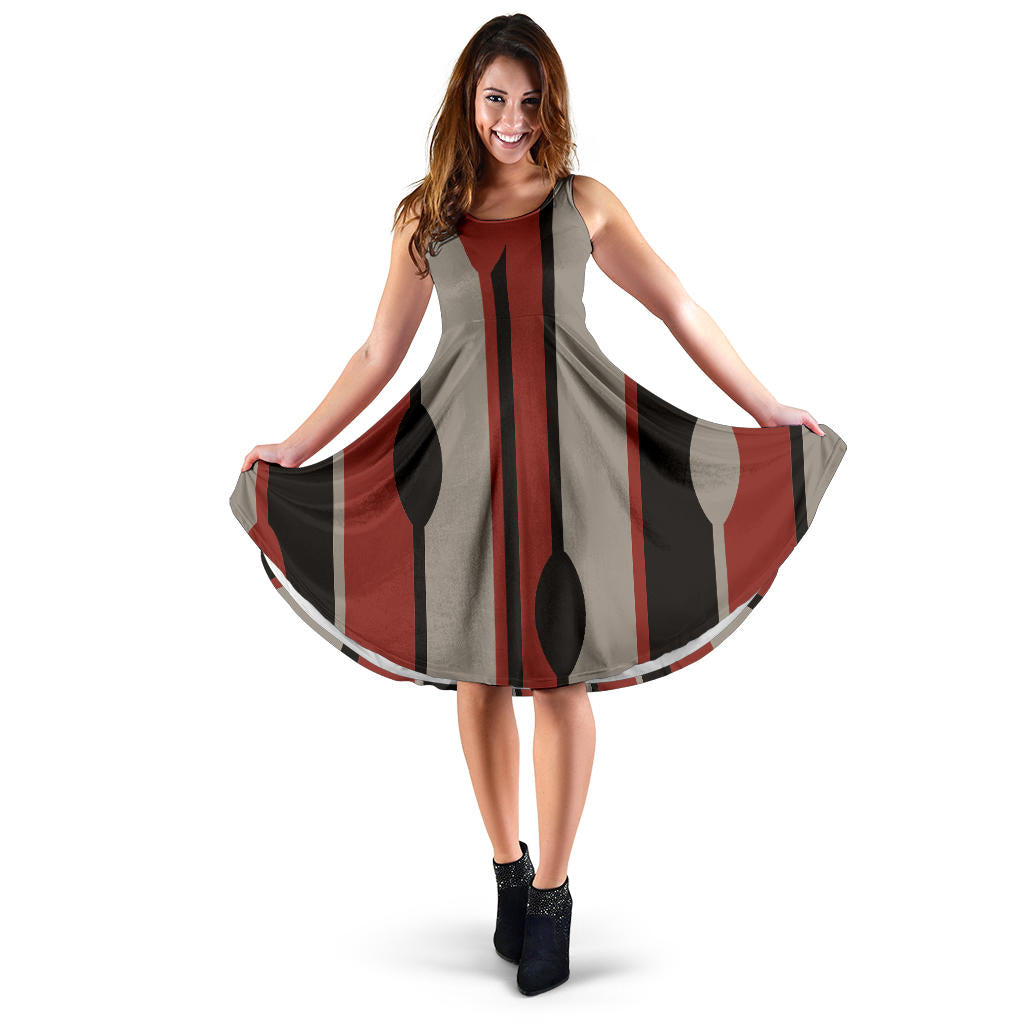 Women's Dress, No Sleeves, Custom Dress, Midi Dress, Beauty And Beast Spoon Pattern