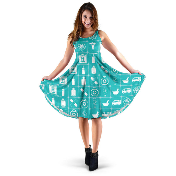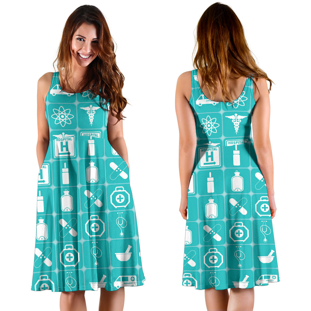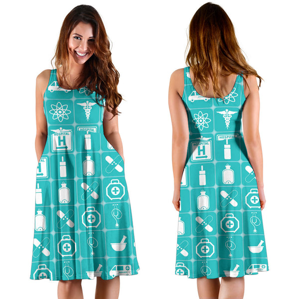 Women's Dress, No Sleeves, Custom Dress, Midi Dress, Doctor 1-04