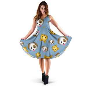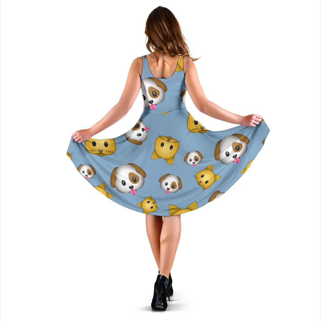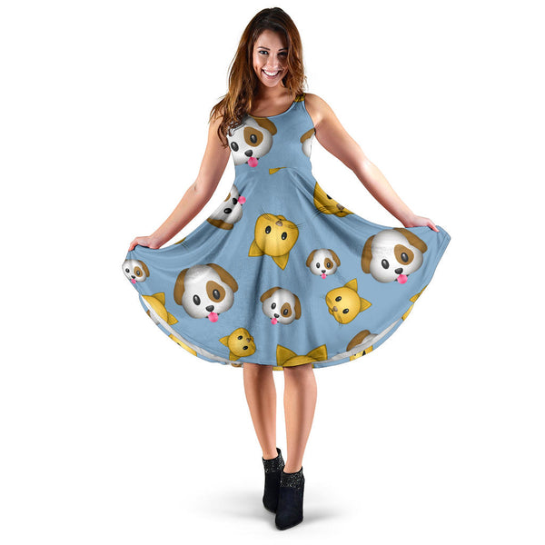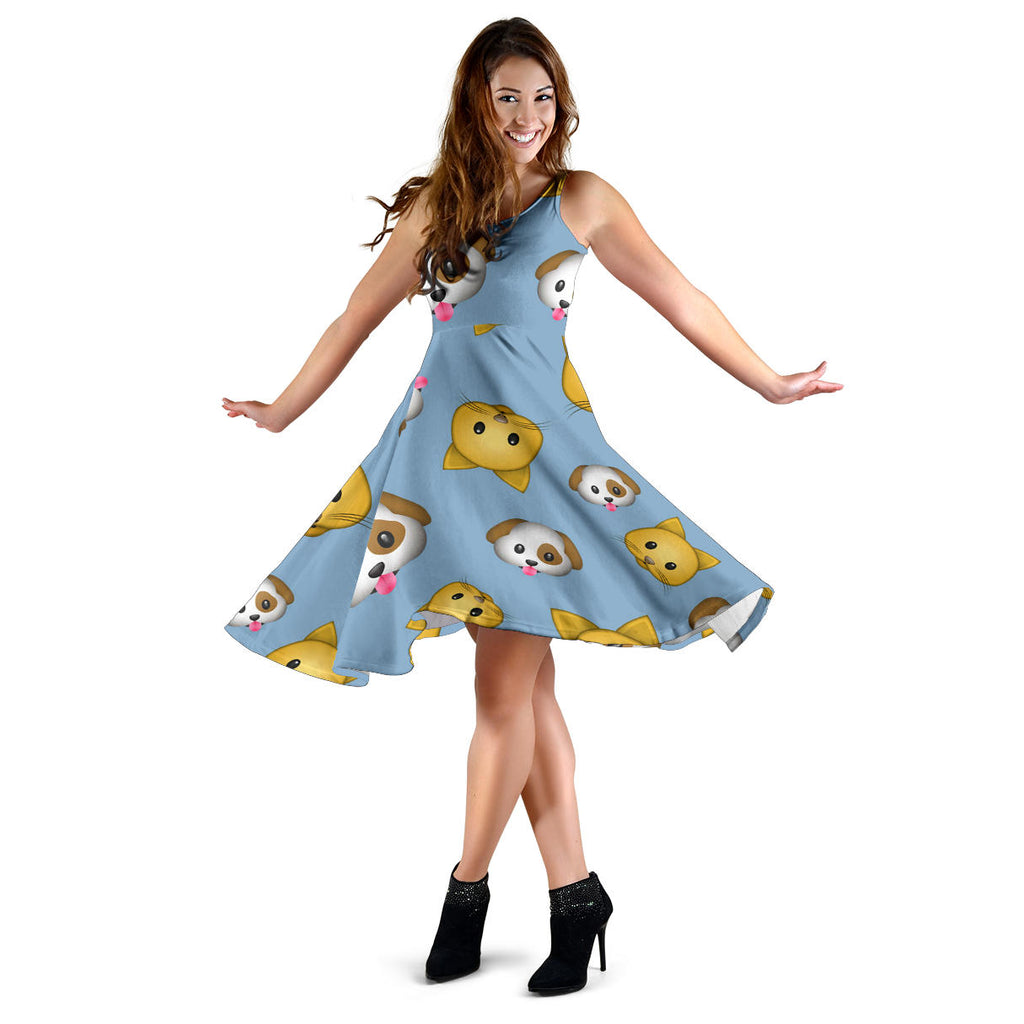 Women's Dress, No Sleeves, Custom Dress, Midi Dress, Emojis 1-01