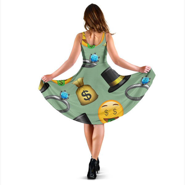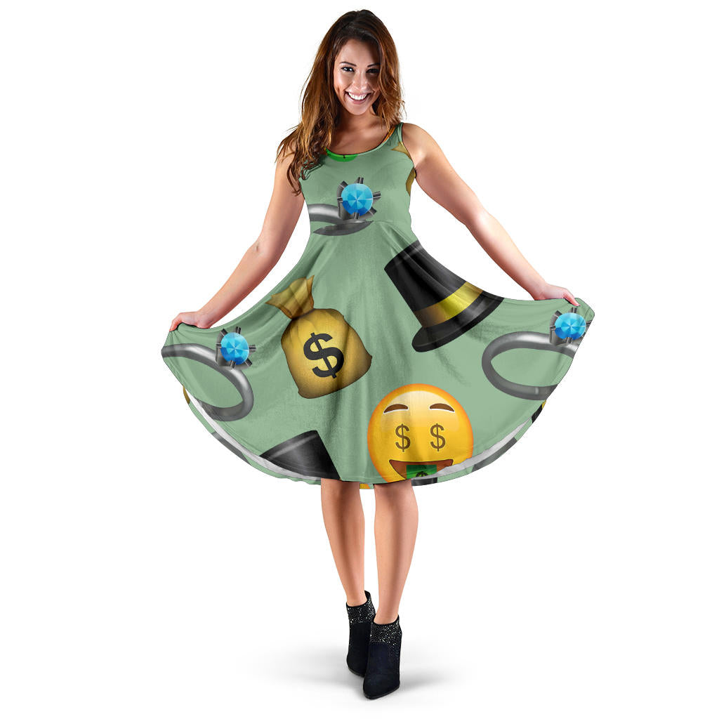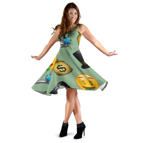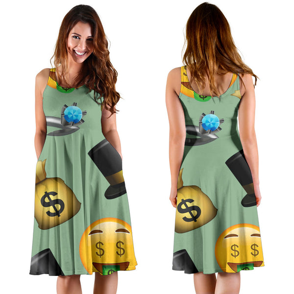 Women's Dress, No Sleeves, Custom Dress, Midi Dress, Emojis 1-05