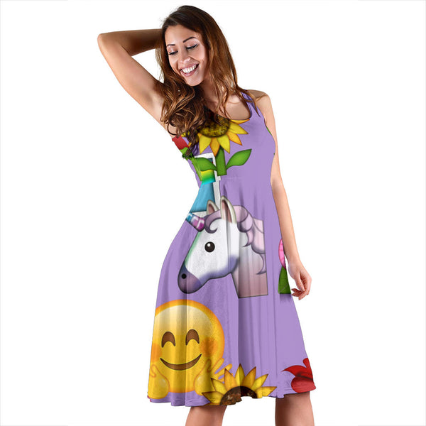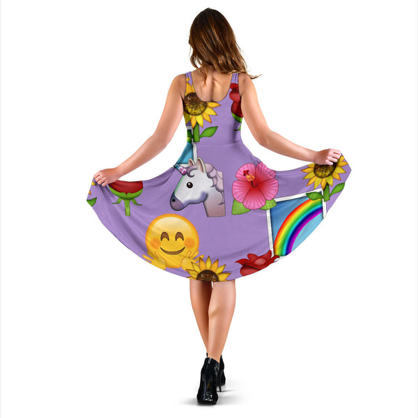 Women's Dress, No Sleeves, Custom Dress, Midi Dress, Emojis 1-08