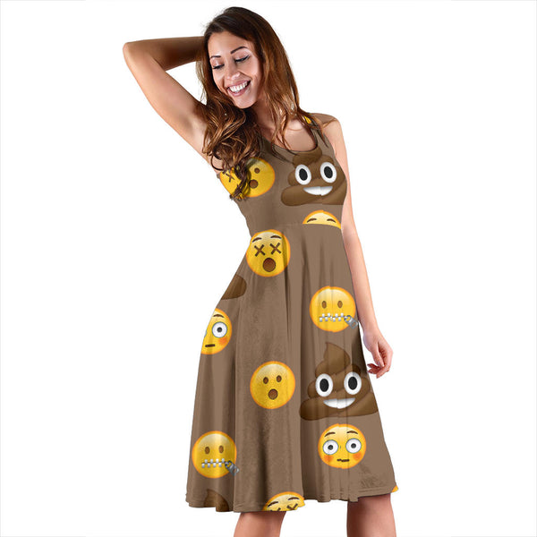 Women's Dress, No Sleeves, Custom Dress, Midi Dress, Emojis 1-09