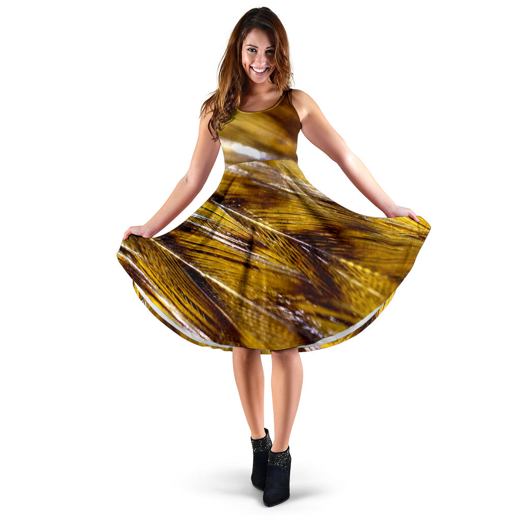 Women's Dress, No Sleeves, Custom Dress, Midi Dress, Feather 1-02