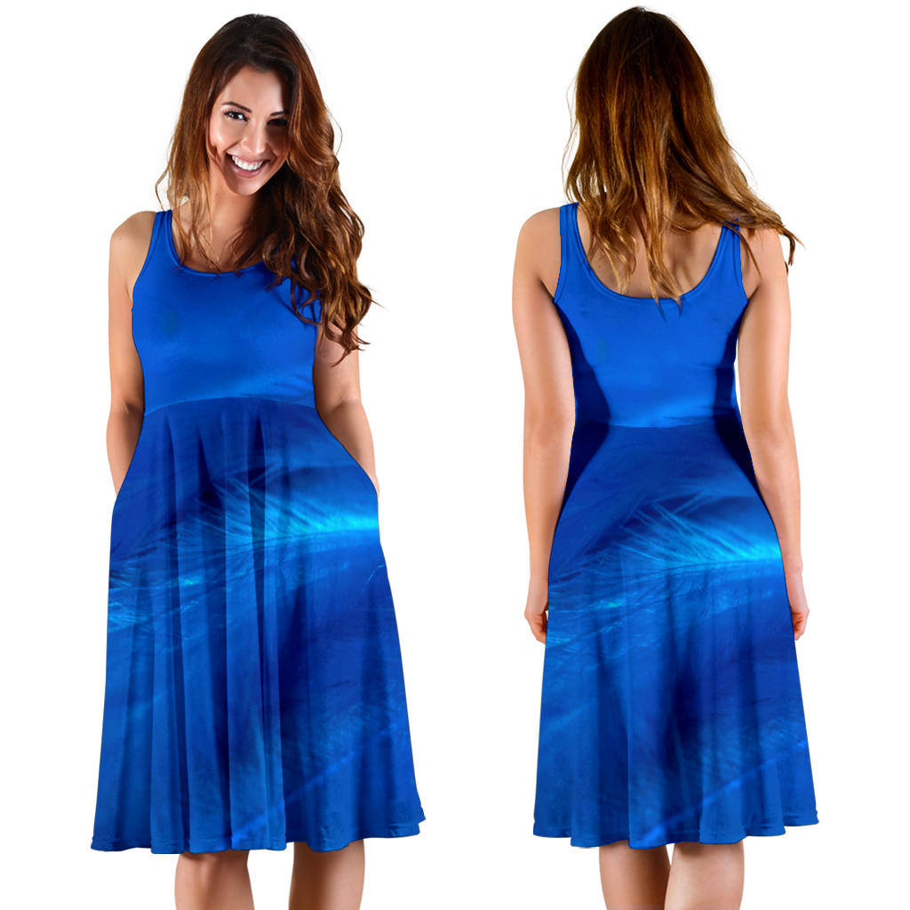 Women's Dress, No Sleeves, Custom Dress, Midi Dress, Feather 1-12