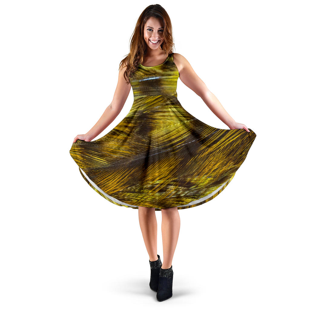 Women's Dress, No Sleeves, Custom Dress, Midi Dress, Feather 1-18