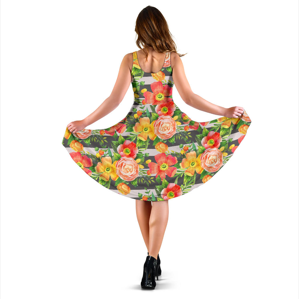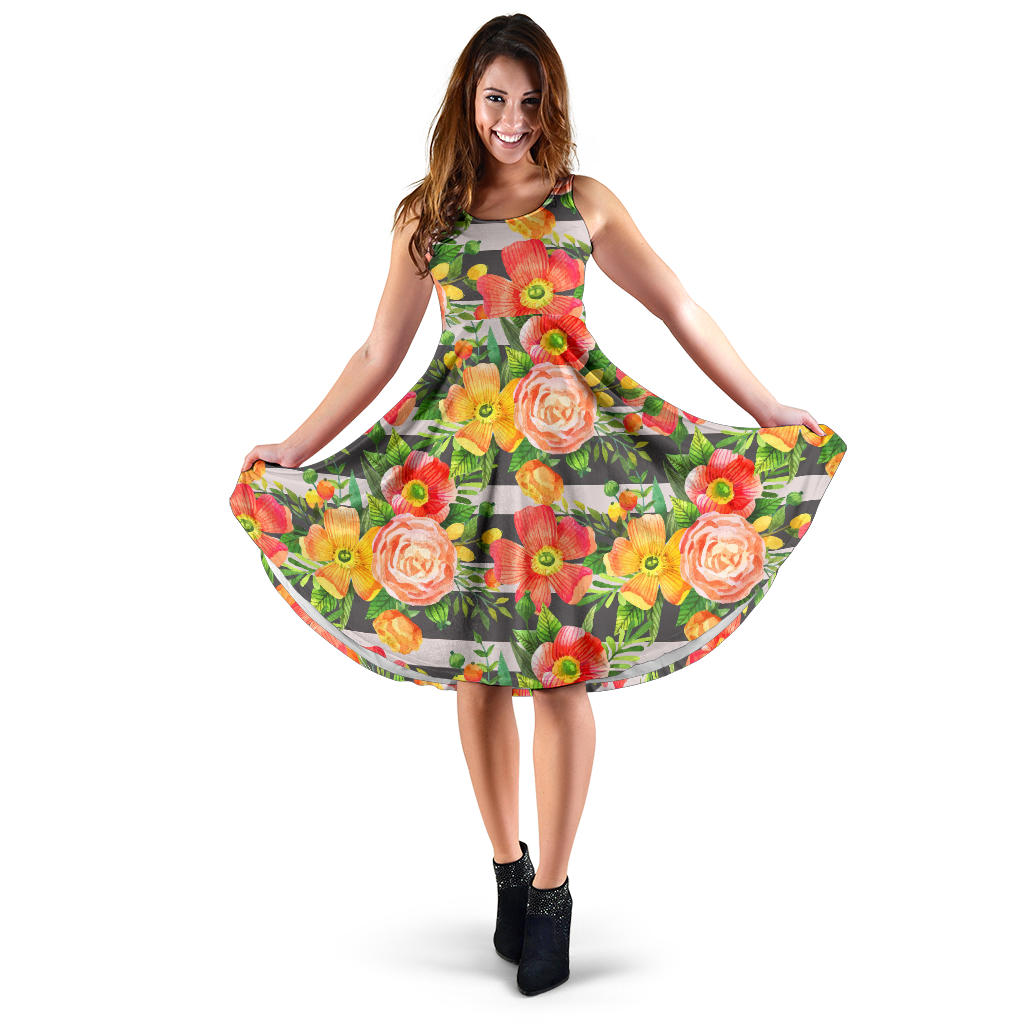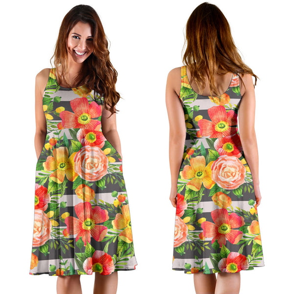 Women's Dress, No Sleeves, Custom Dress, Midi Dress, Floral Spring 1-01