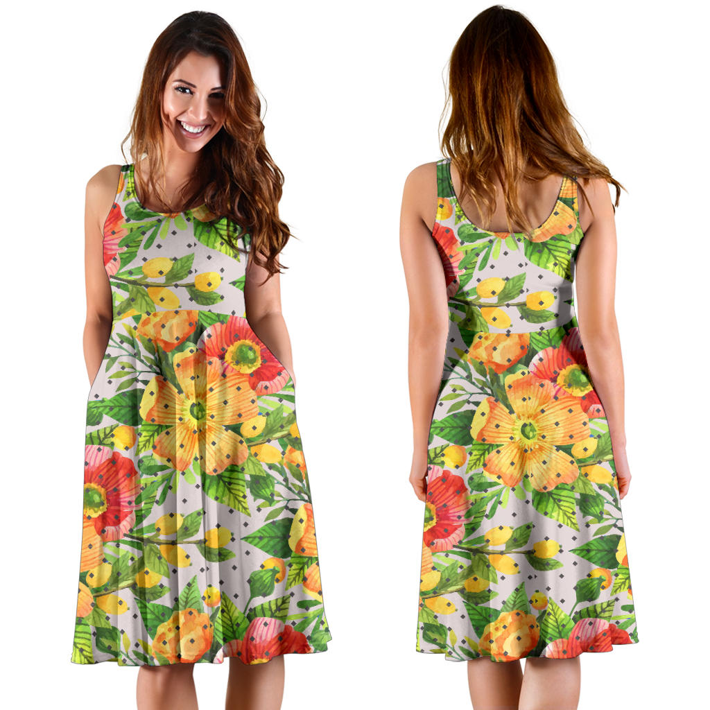 Women's Dress, No Sleeves, Custom Dress, Midi Dress, Floral Spring 1-12