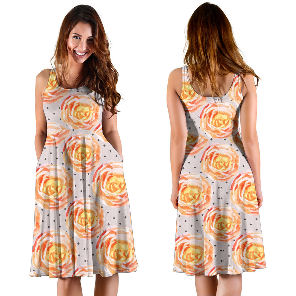Women's Dress, No Sleeves, Custom Dress, Midi Dress, Floral Spring 1-13