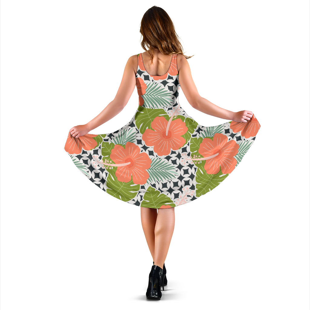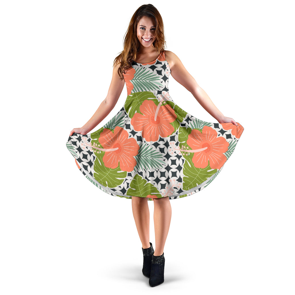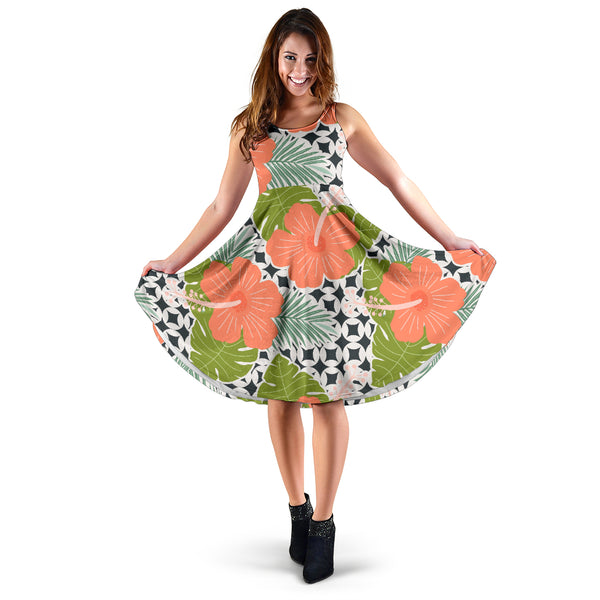 Women's Dress, No Sleeves, Custom Dress, Midi Dress, Floral Tropical 1-01