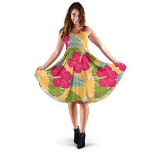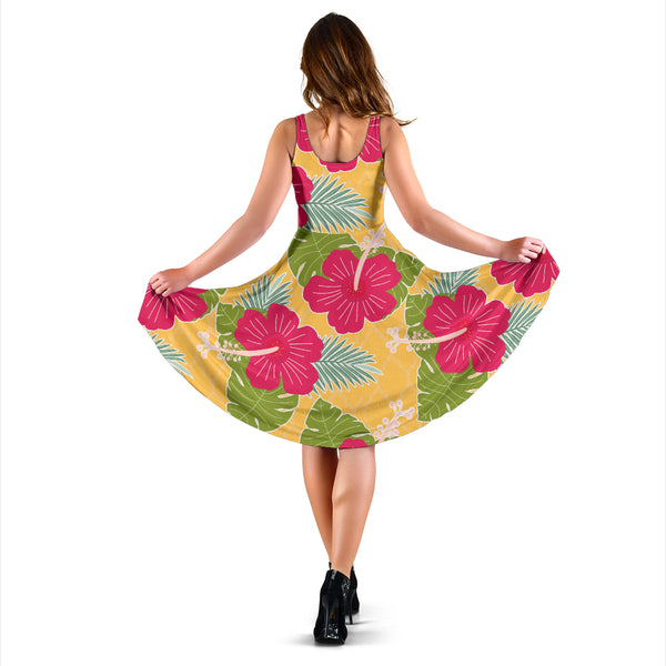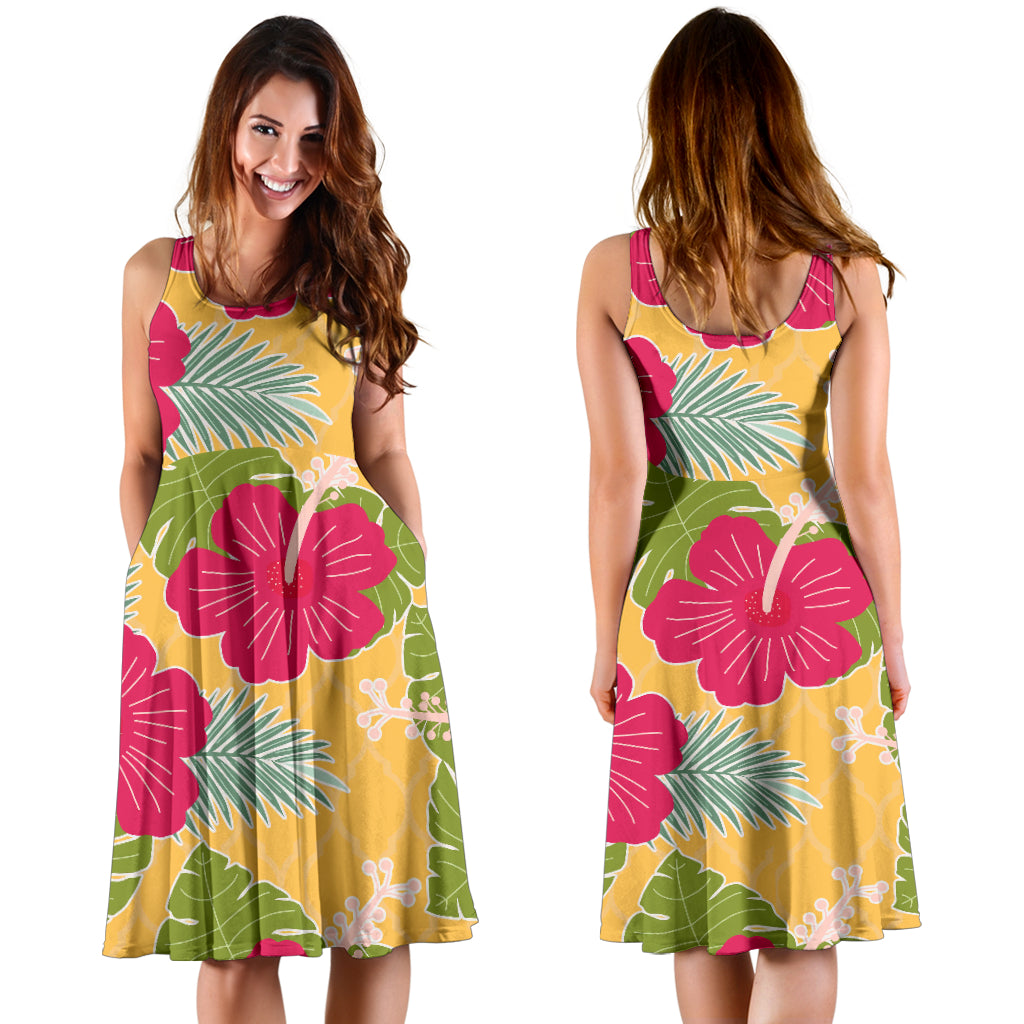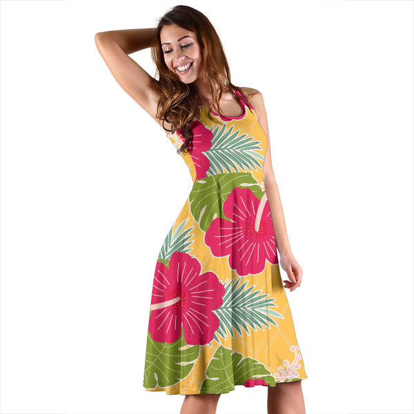 Women's Dress, No Sleeves, Custom Dress, Midi Dress, Floral Tropical 1-04