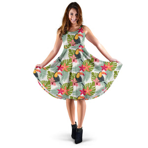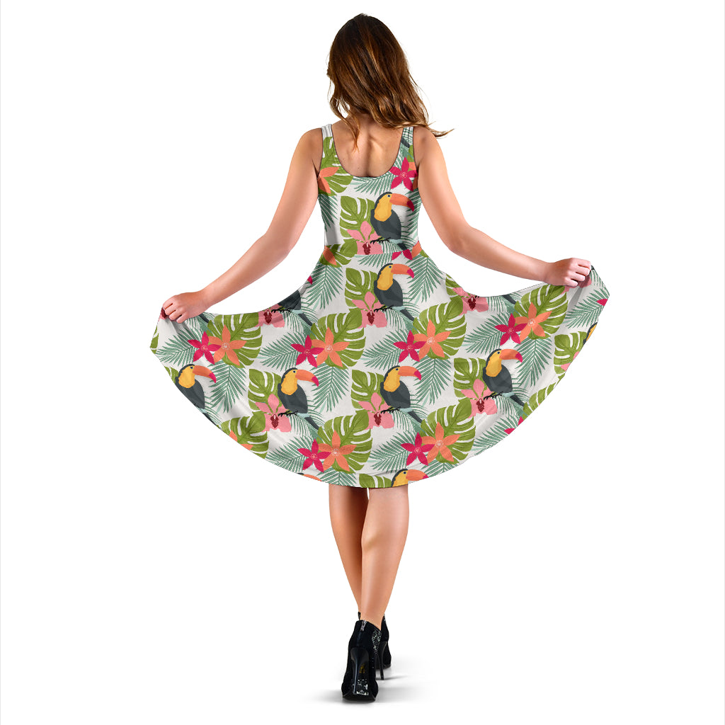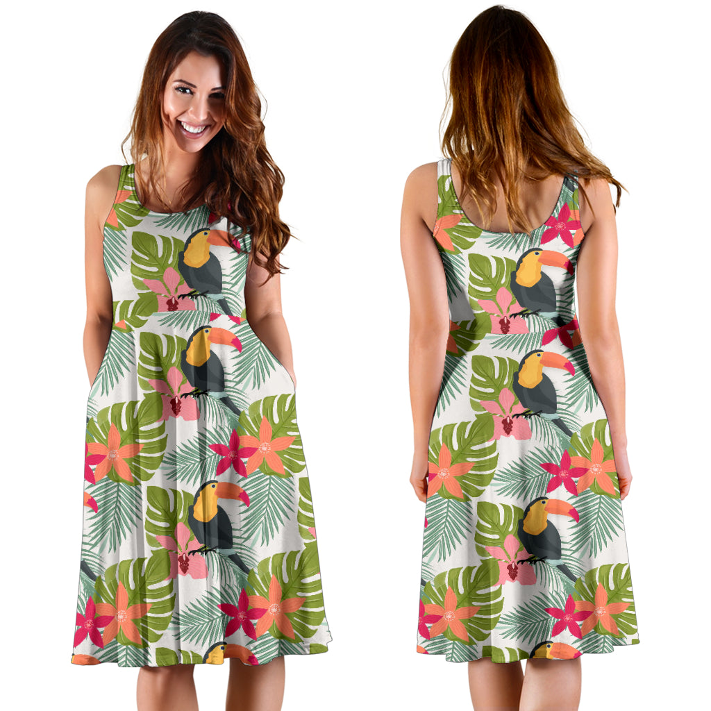 Women's Dress, No Sleeves, Custom Dress, Midi Dress, Floral Tropical 1-06