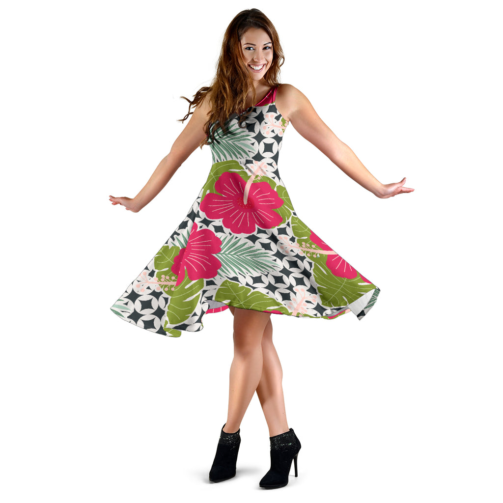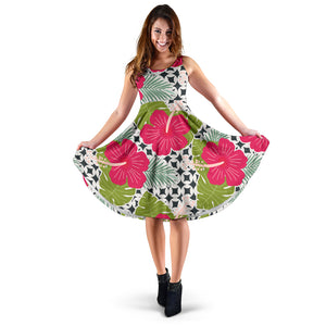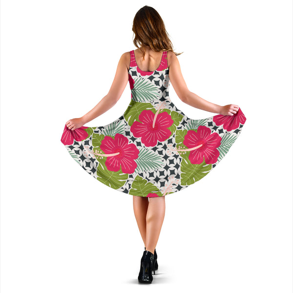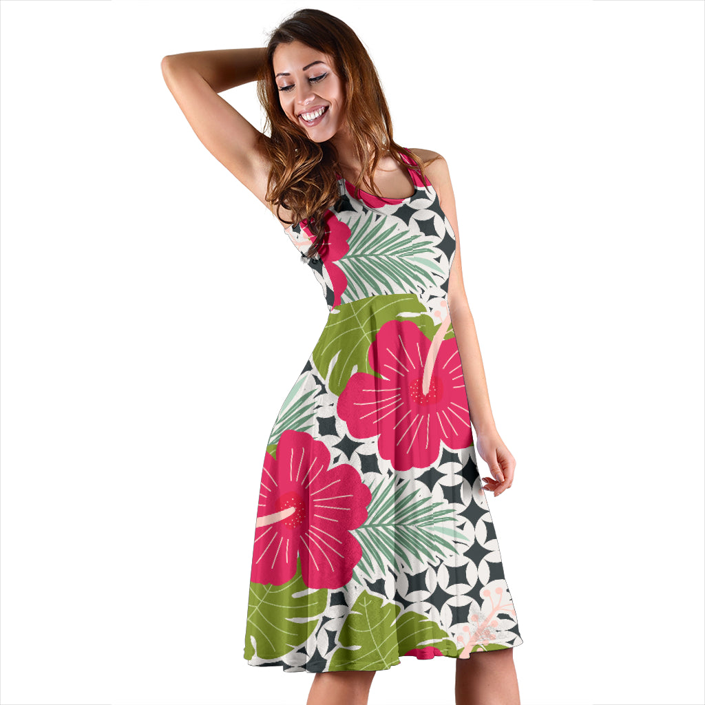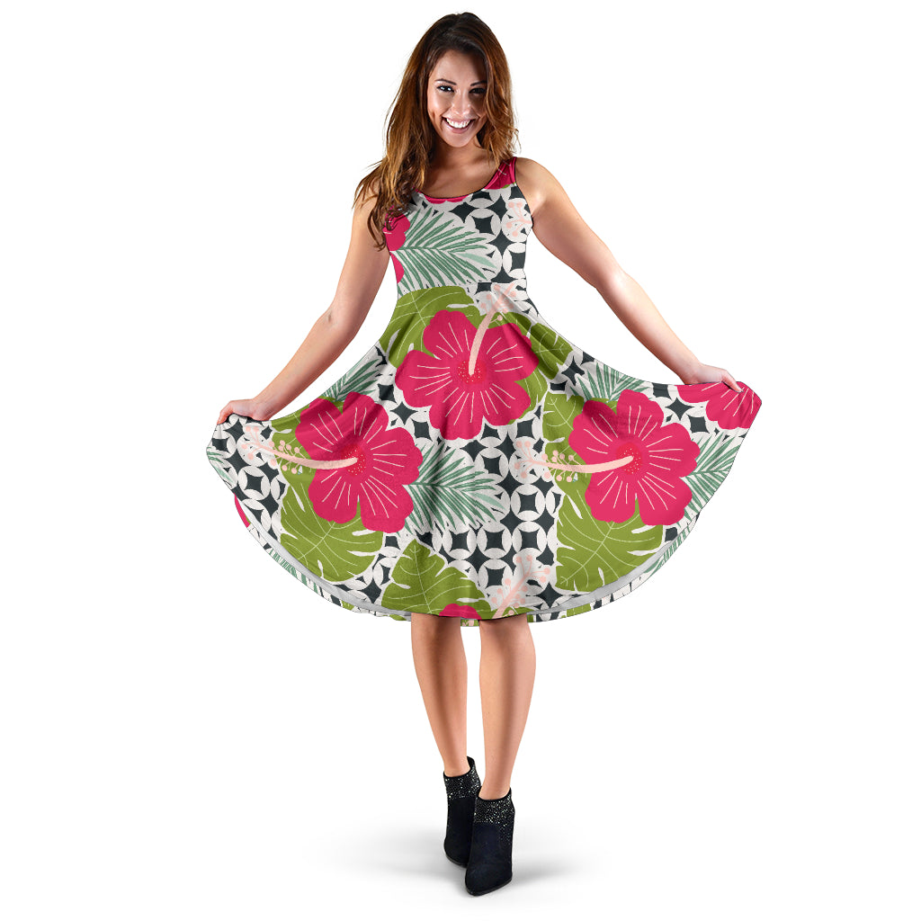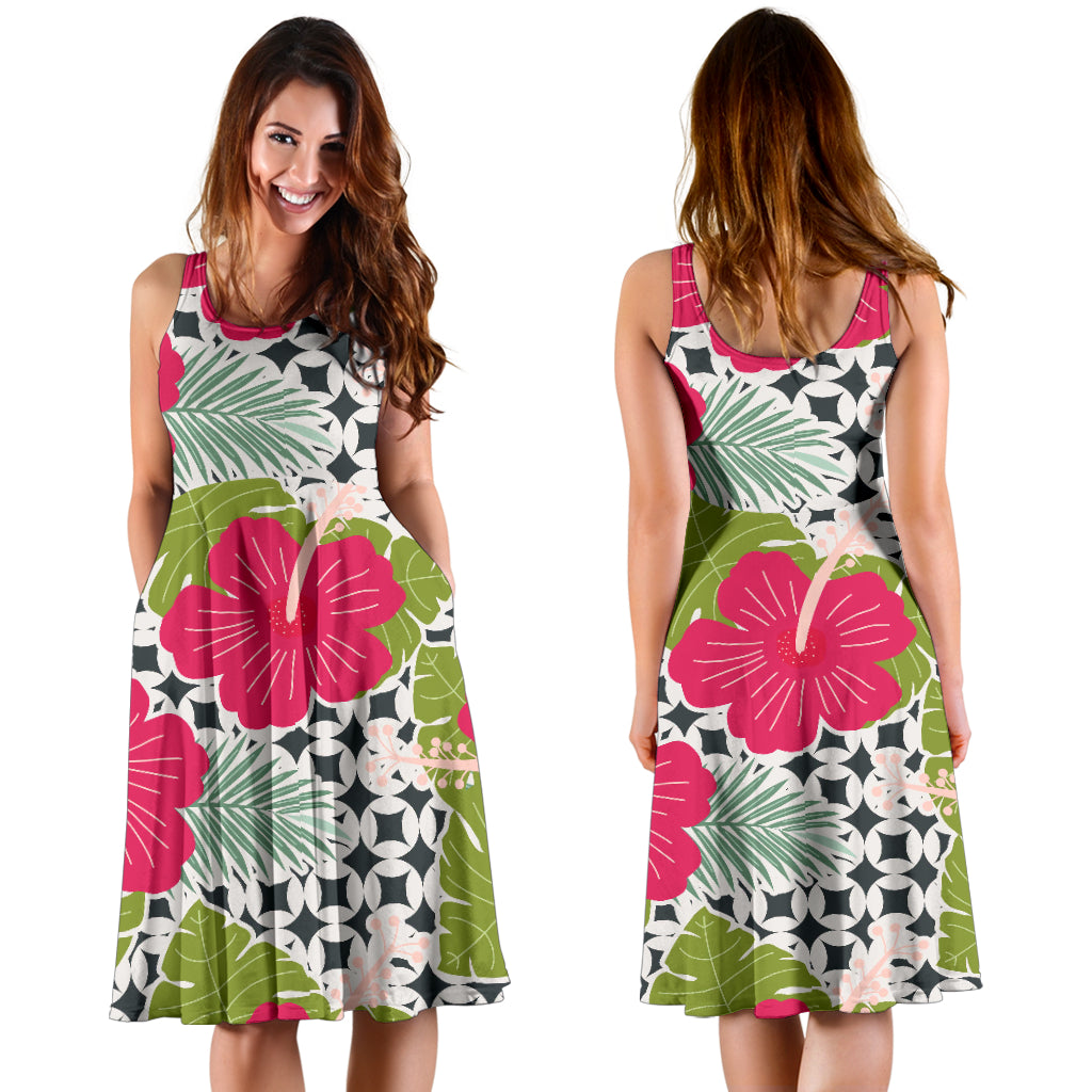 Women's Dress, No Sleeves, Custom Dress, Midi Dress, Floral Tropical 1-07
