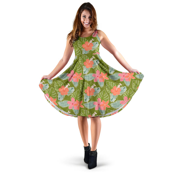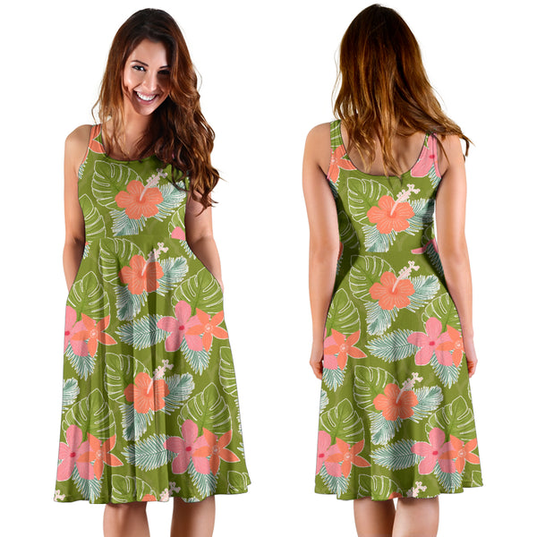 Women's Dress, No Sleeves, Custom Dress, Midi Dress, Floral Tropical 1-12