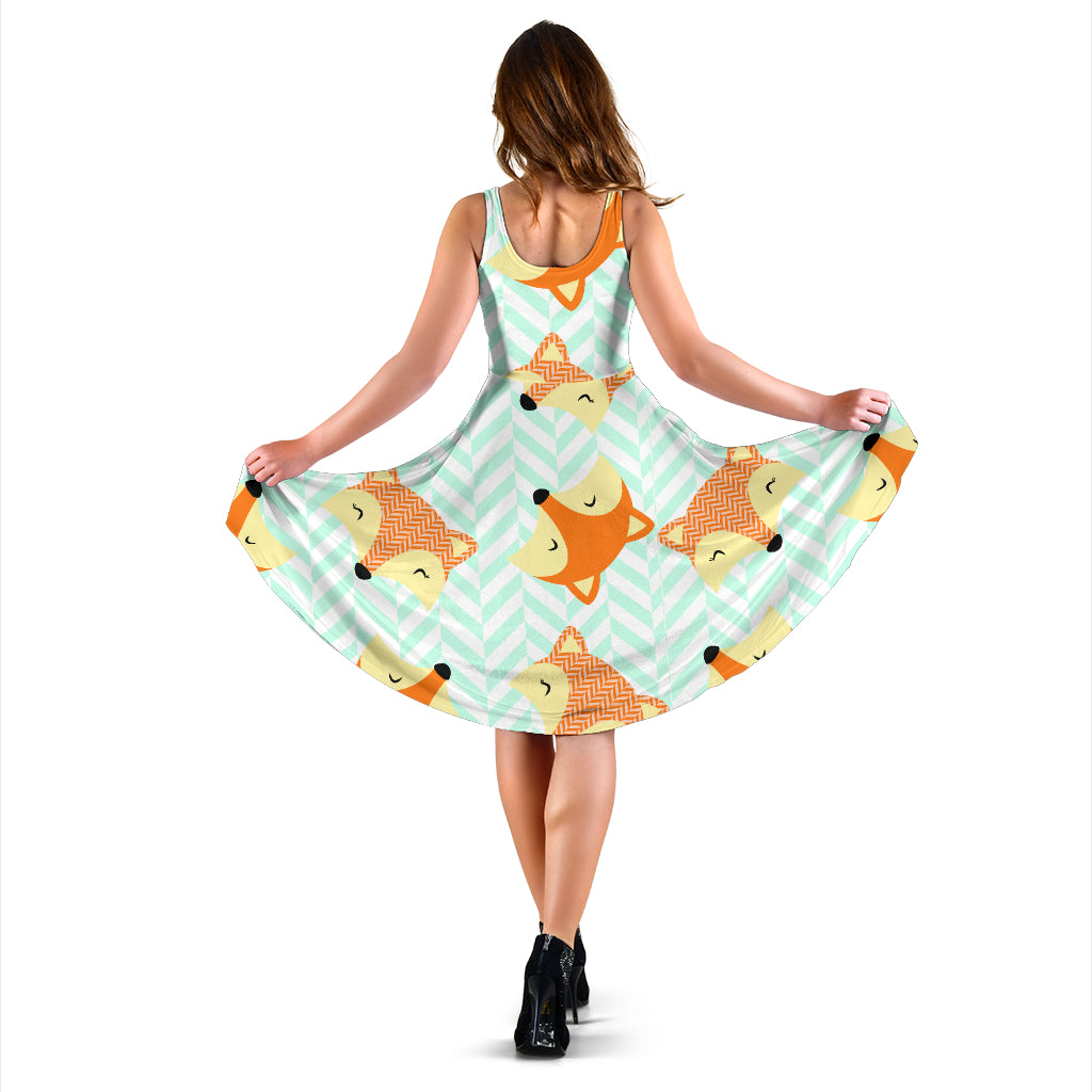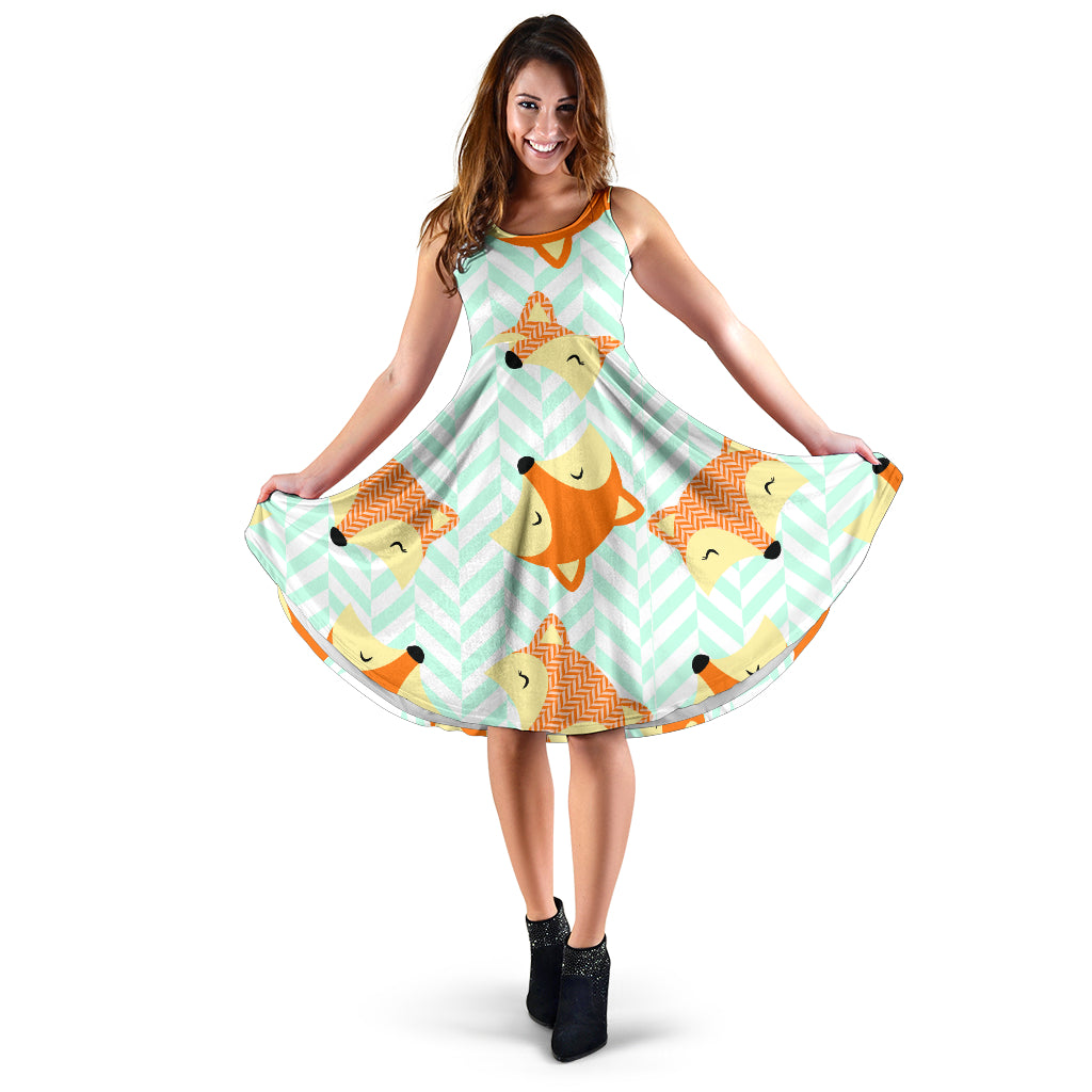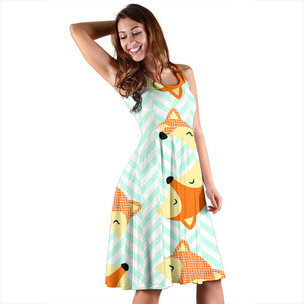 Women's Dress, No Sleeves, Custom Dress, Midi Dress, Foxes 2-11