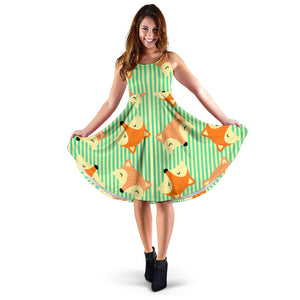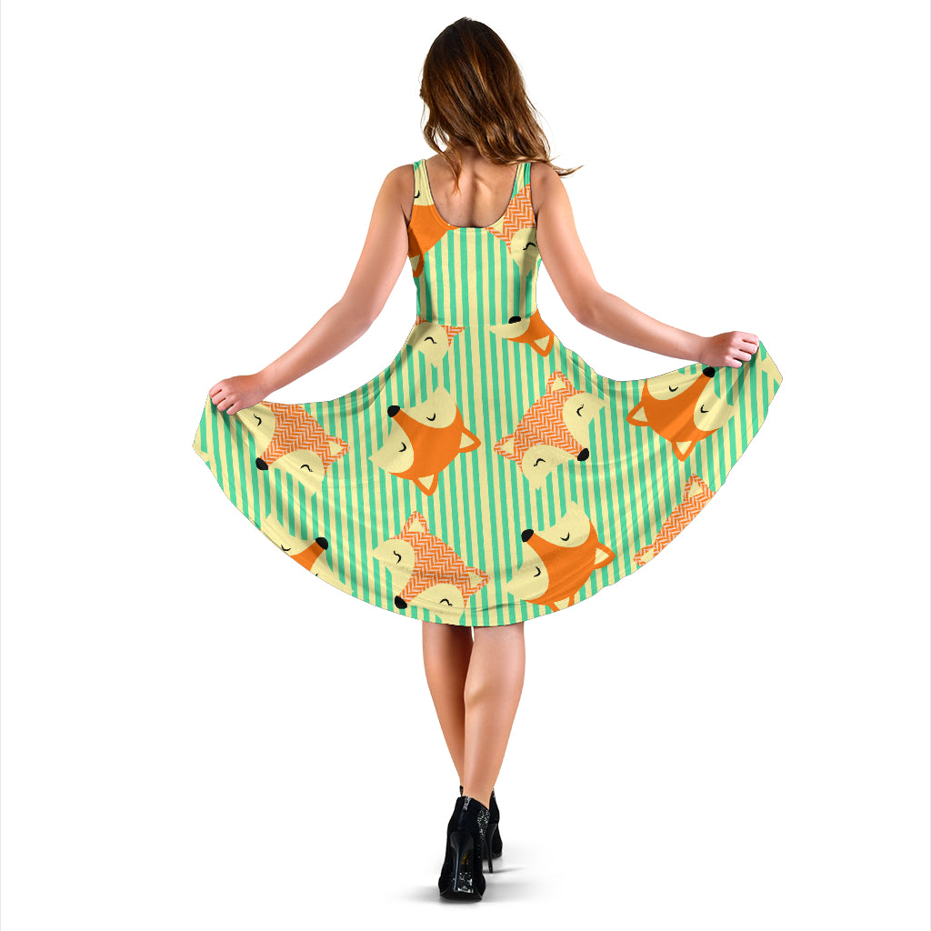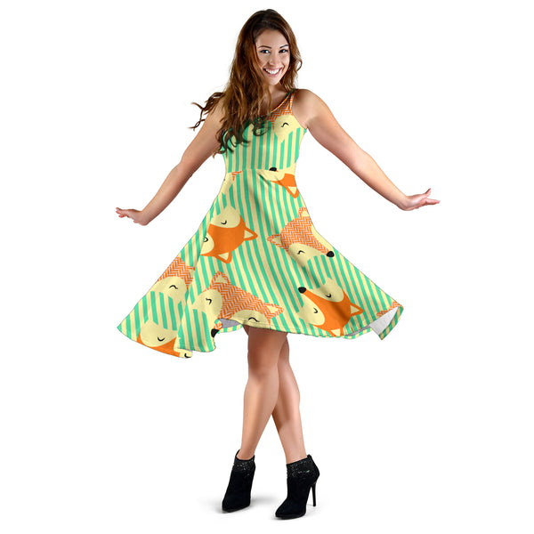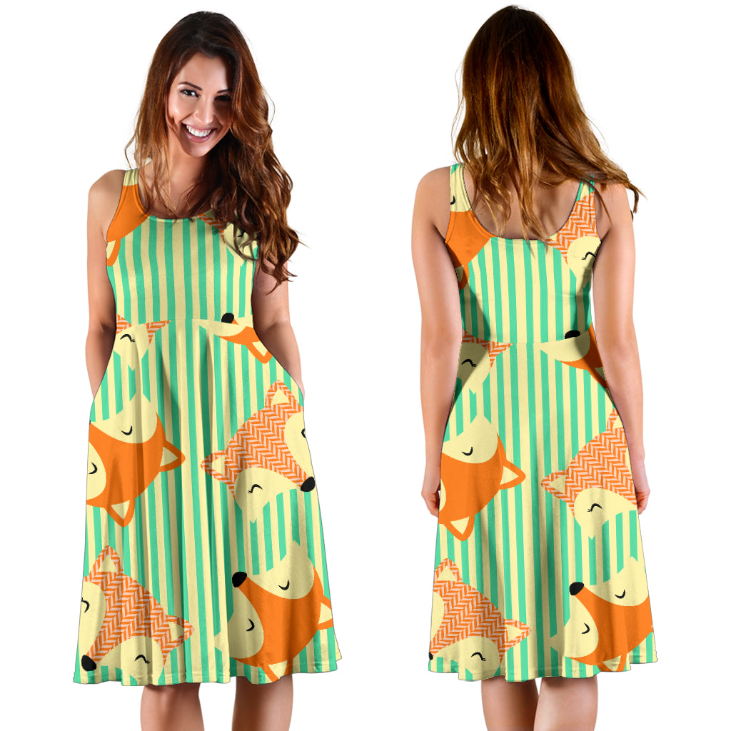 Women's Dress, No Sleeves, Custom Dress, Midi Dress, Foxes 2-12