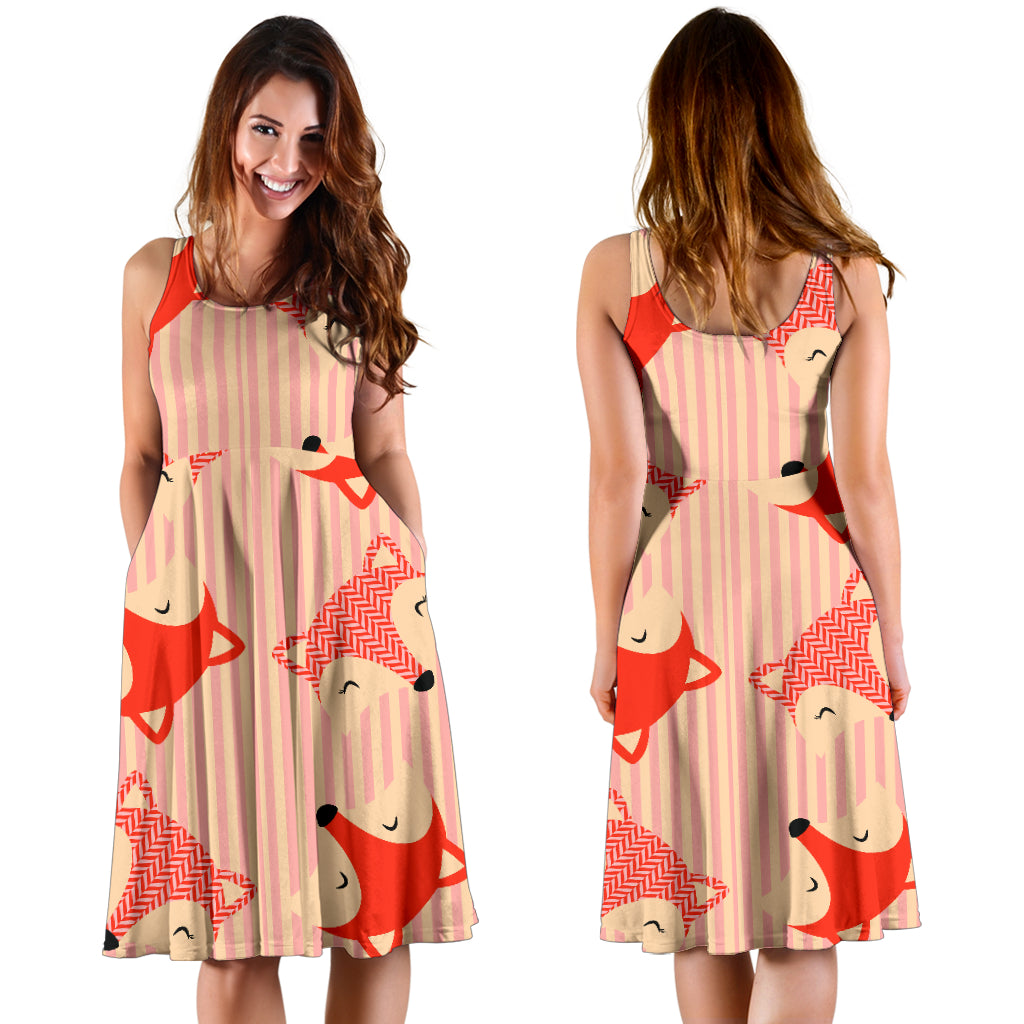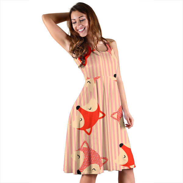 Women's Dress, No Sleeves, Custom Dress, Midi Dress, Foxes 3-04