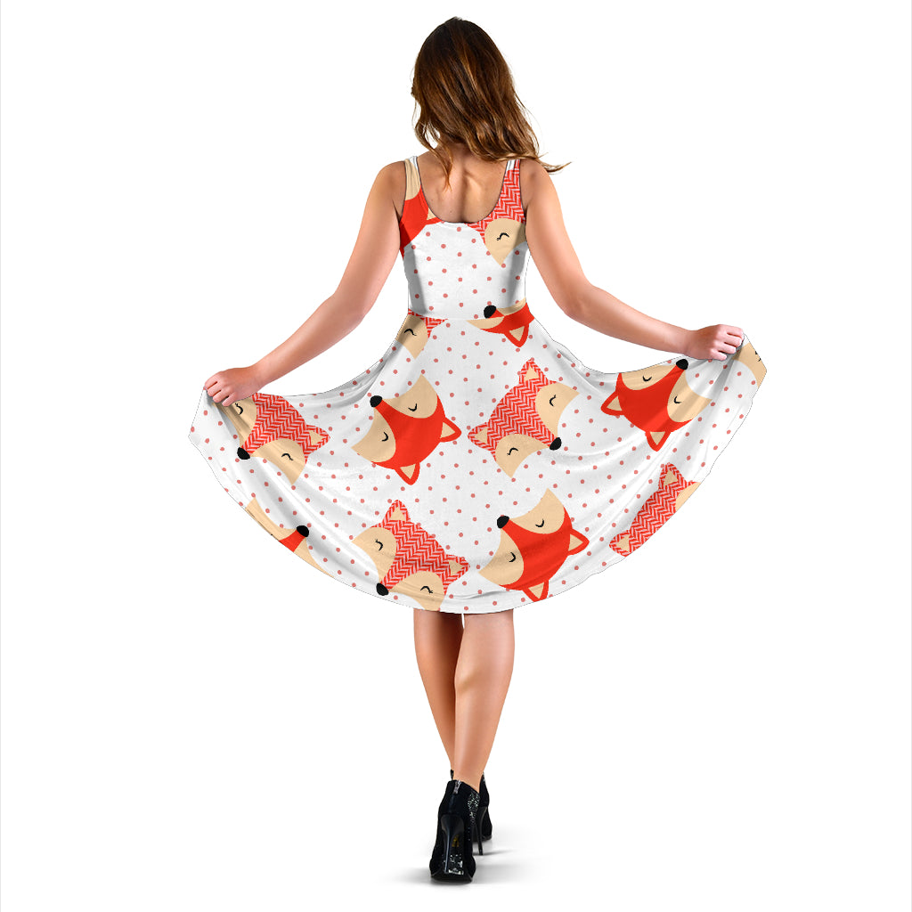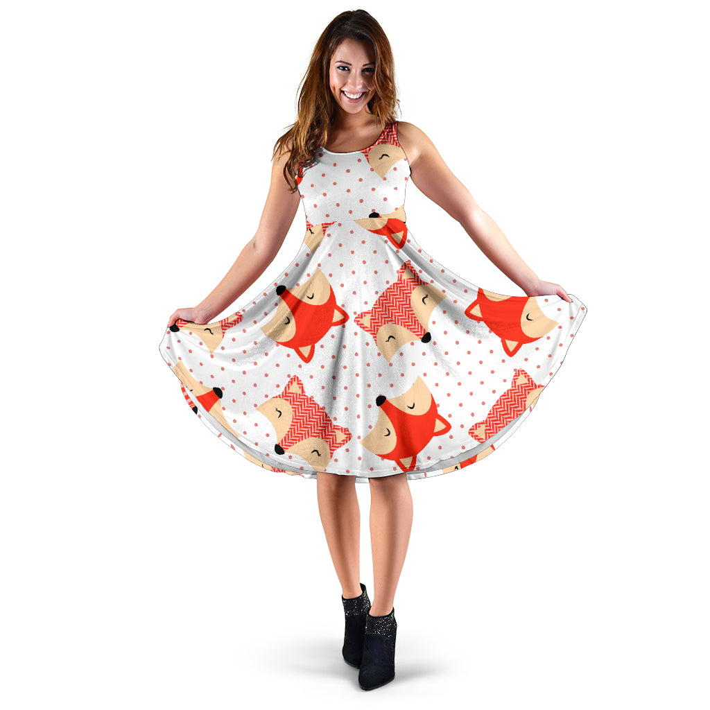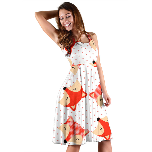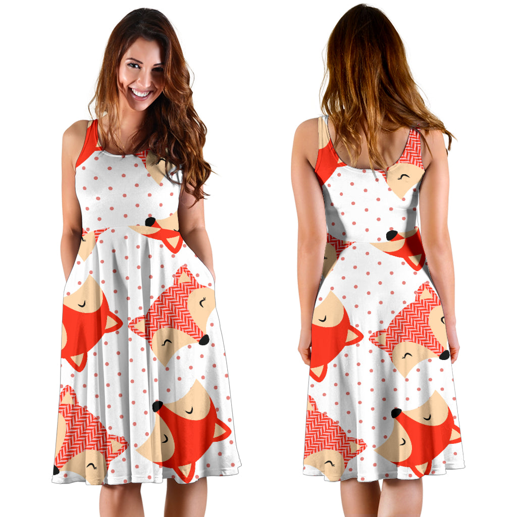 Women's Dress, No Sleeves, Custom Dress, Midi Dress, Foxes 3-10