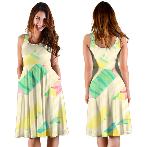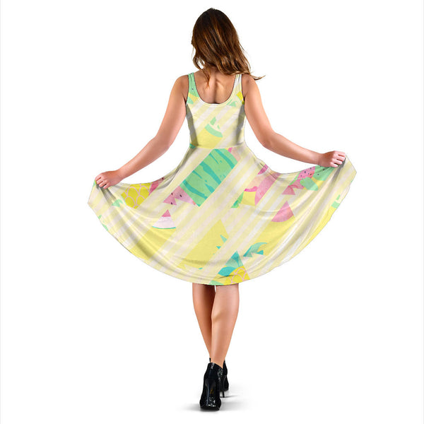 Women's Dress, No Sleeves, Custom Dress, Midi Dress, Fruits 01