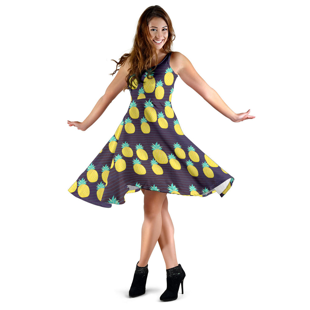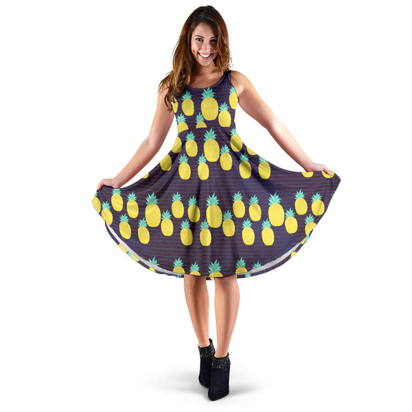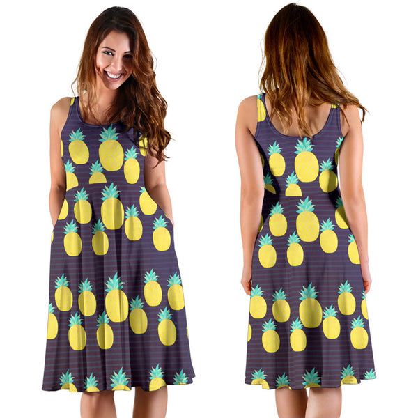 Women's Dress, No Sleeves, Custom Dress, Midi Dress, Fruits 05