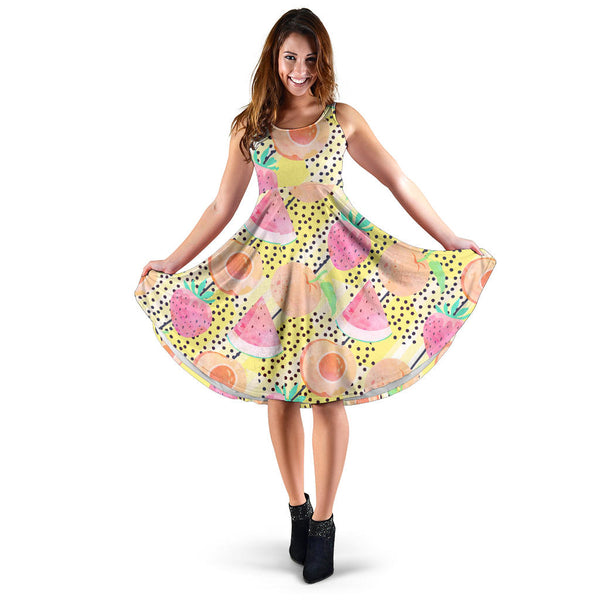 Women's Dress, No Sleeves, Custom Dress, Midi Dress, Fruits 09