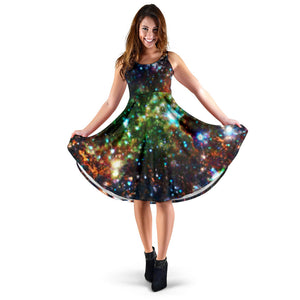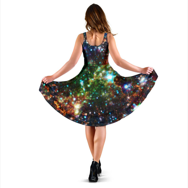 Women's Dress, No Sleeves, Custom Dress, Midi Dress, Galaxy 1-05