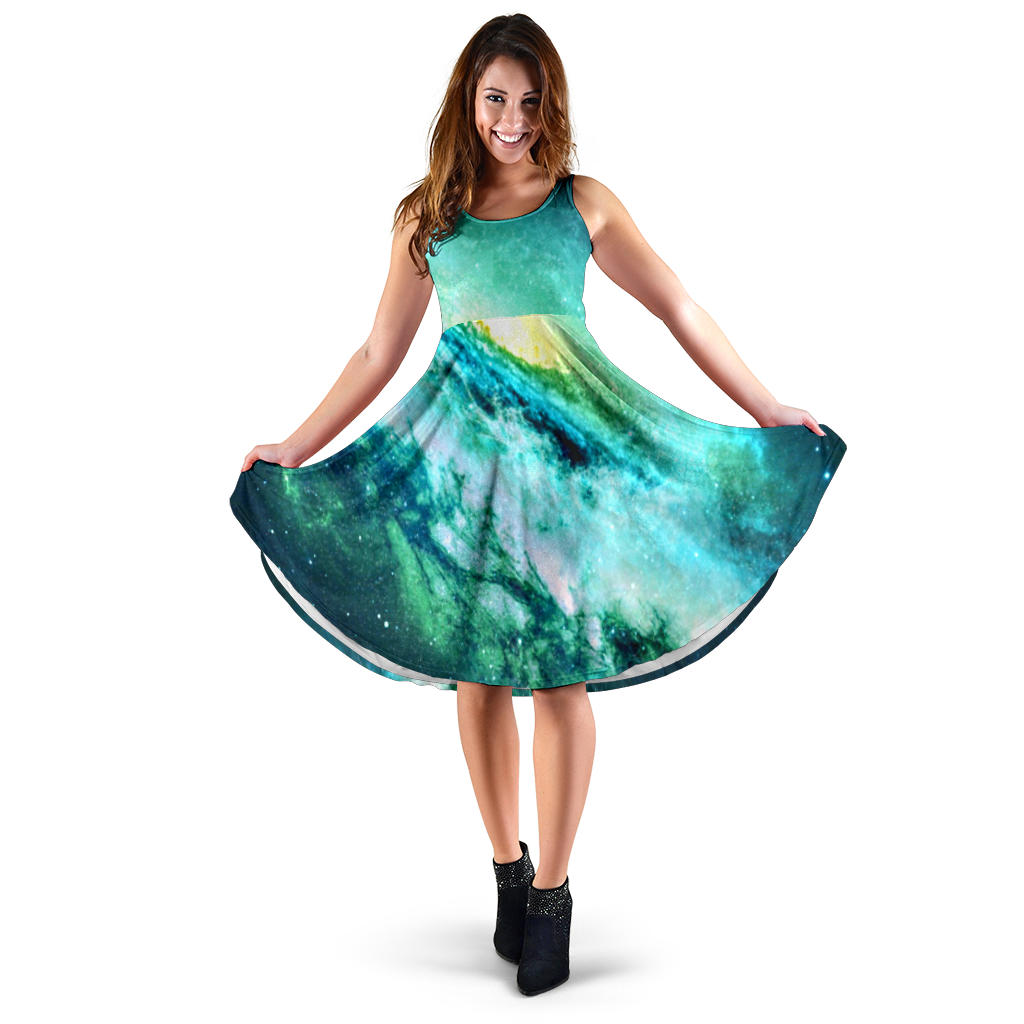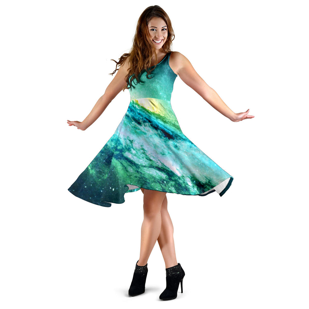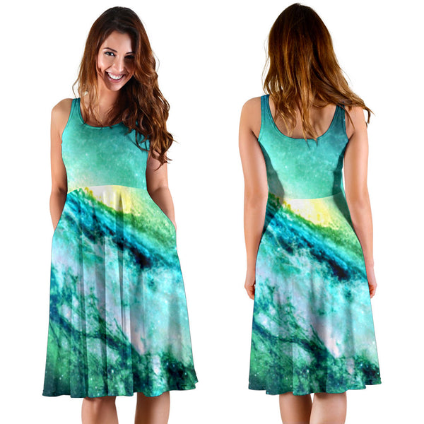 Women's Dress, No Sleeves, Custom Dress, Midi Dress, Galaxy 1-07