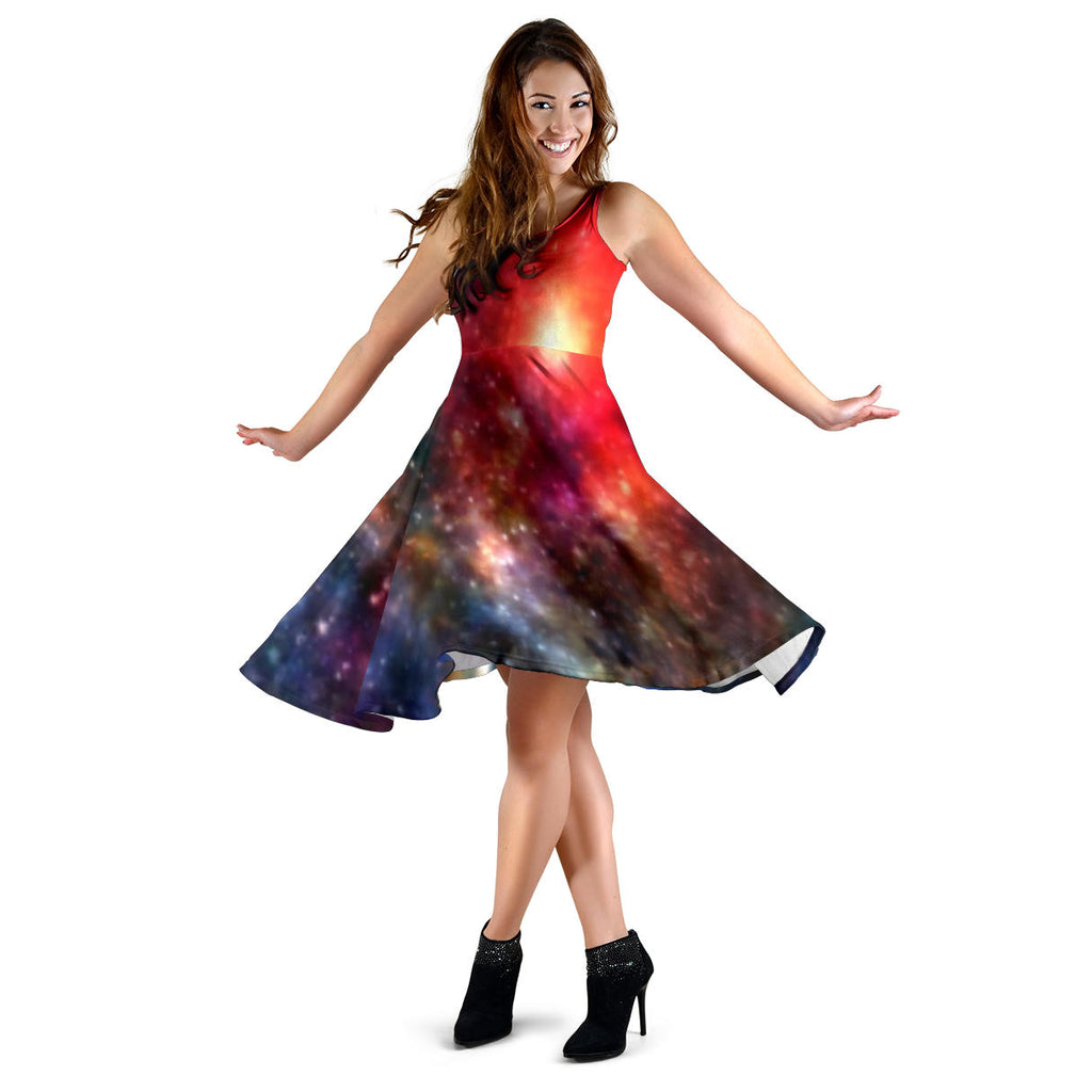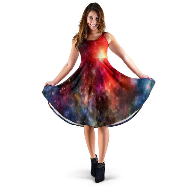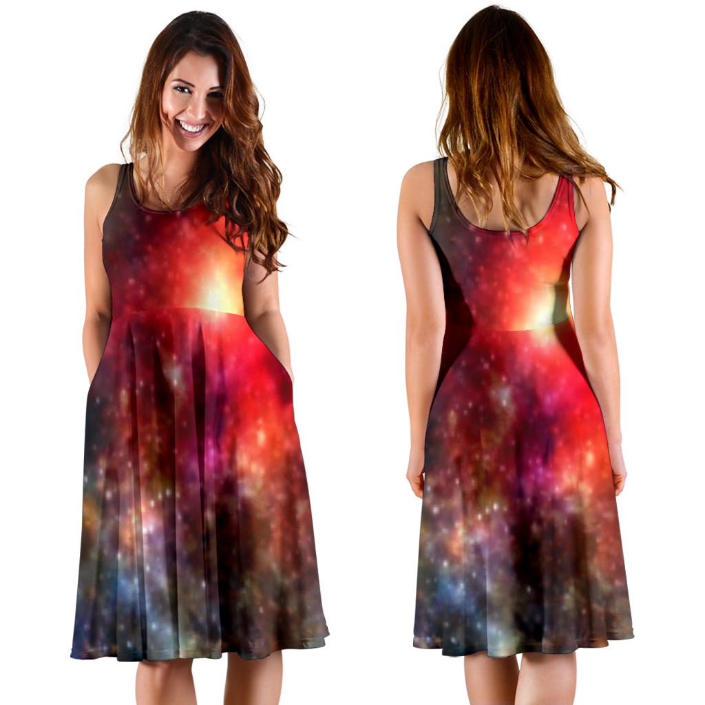 Women's Dress, No Sleeves, Custom Dress, Midi Dress, Galaxy 1-10