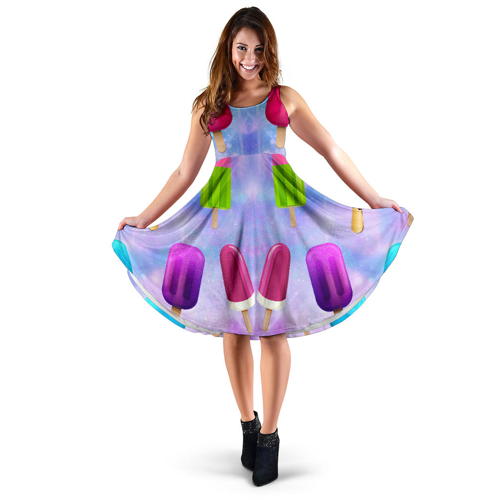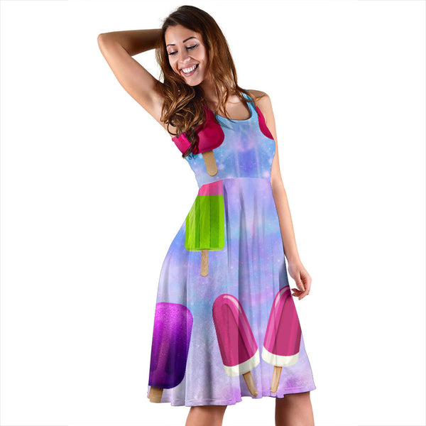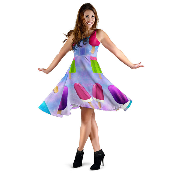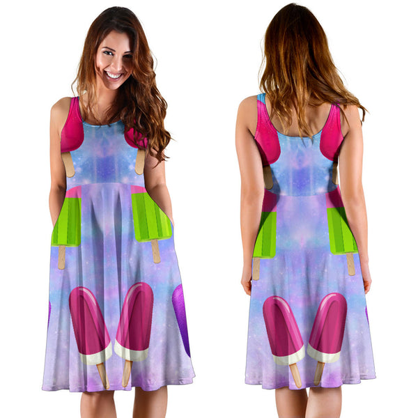 Women's Dress, No Sleeves, Custom Dress, Midi Dress, Ice Cream 1-03