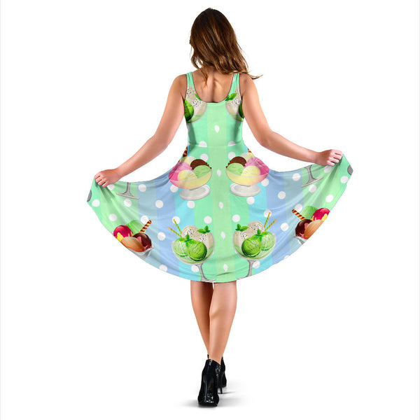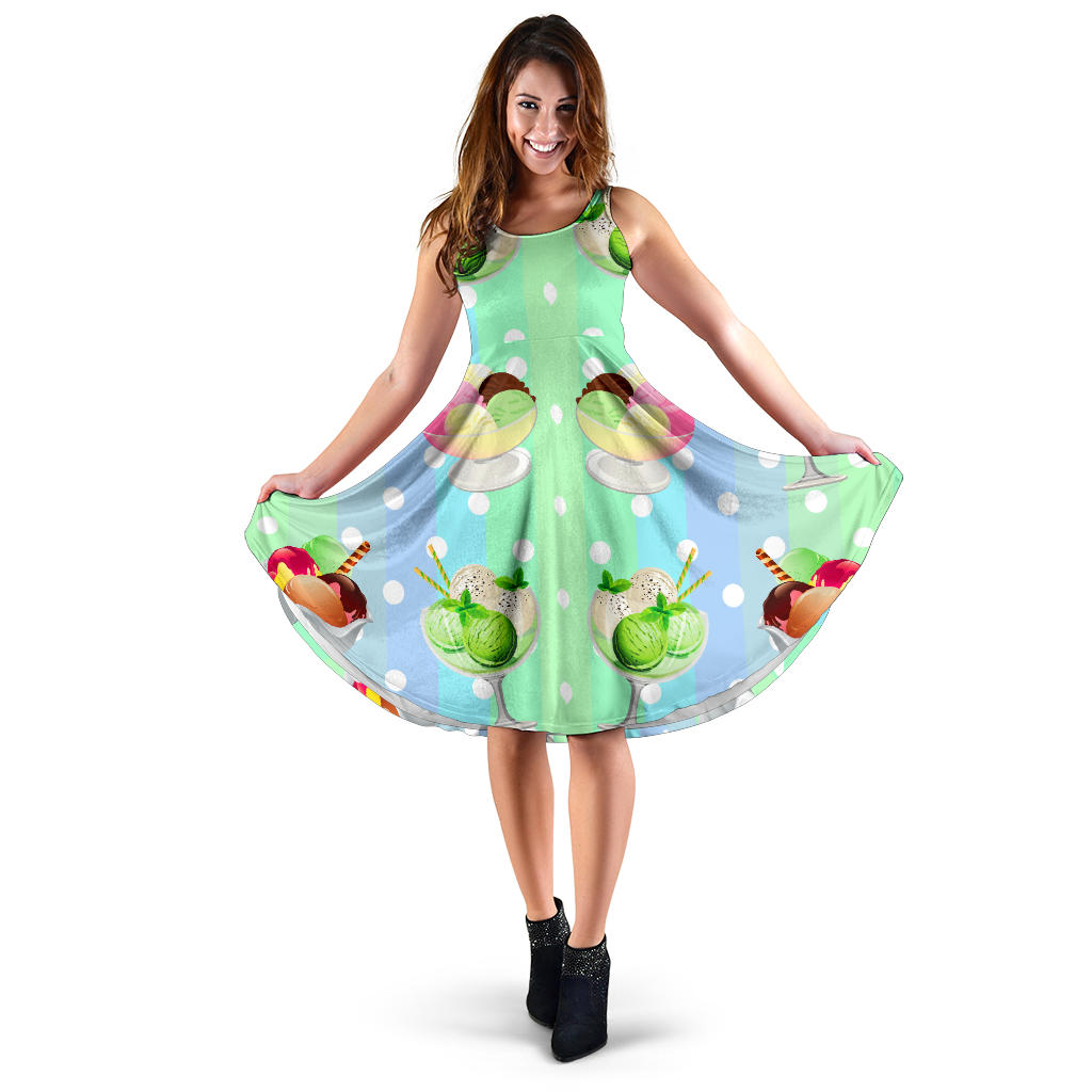 Women's Dress, No Sleeves, Custom Dress, Midi Dress, Ice Cream 1-04