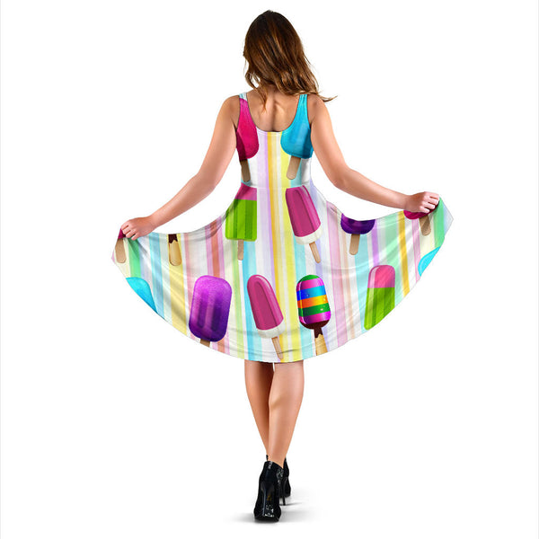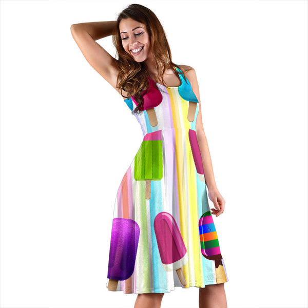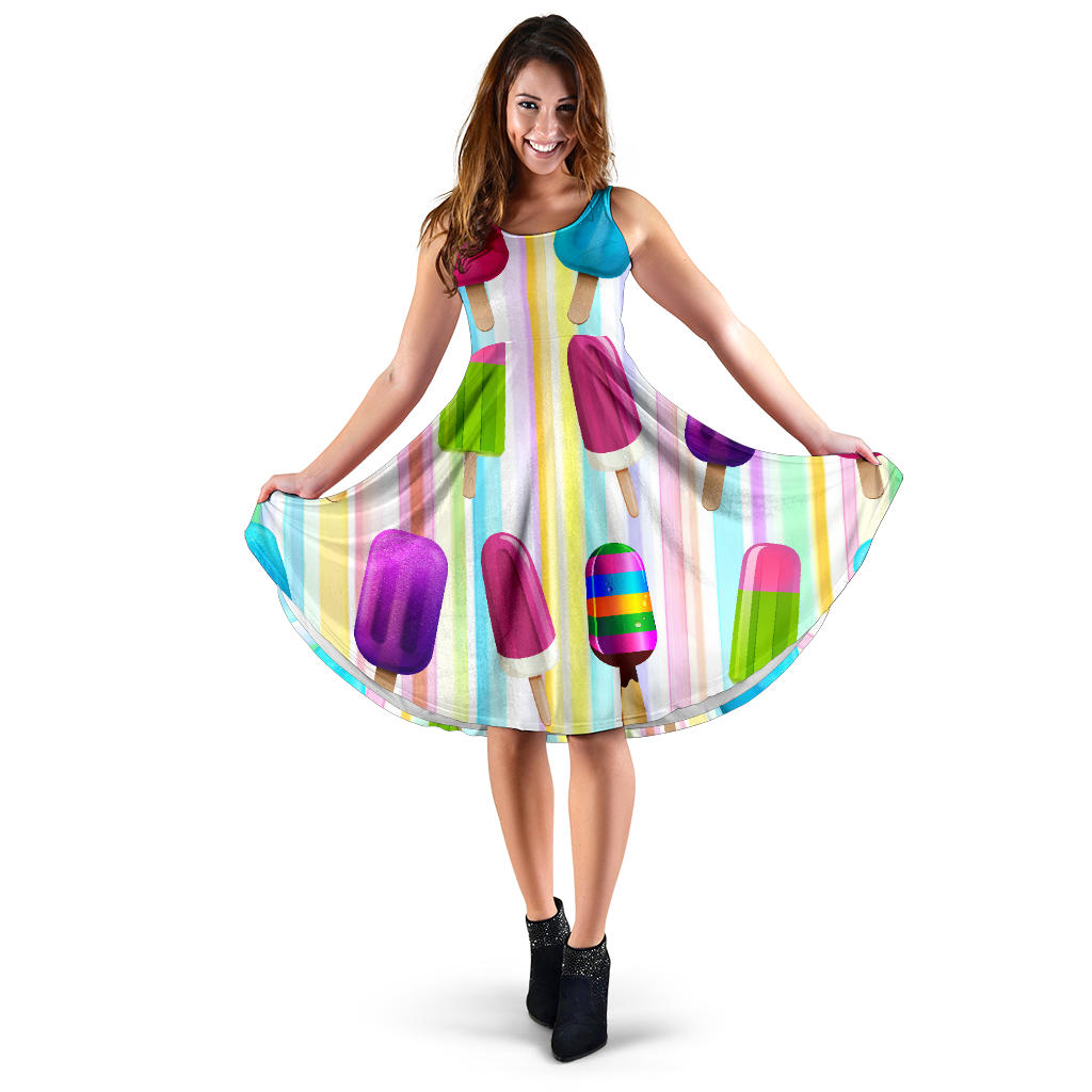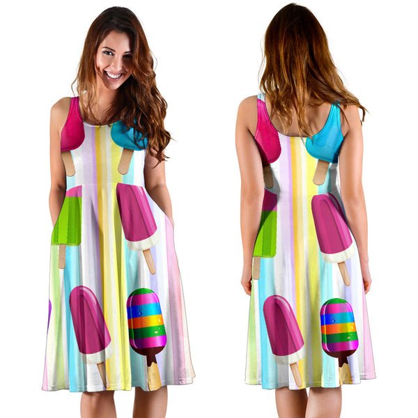 Women's Dress, No Sleeves, Custom Dress, Midi Dress, Ice Cream 1-07