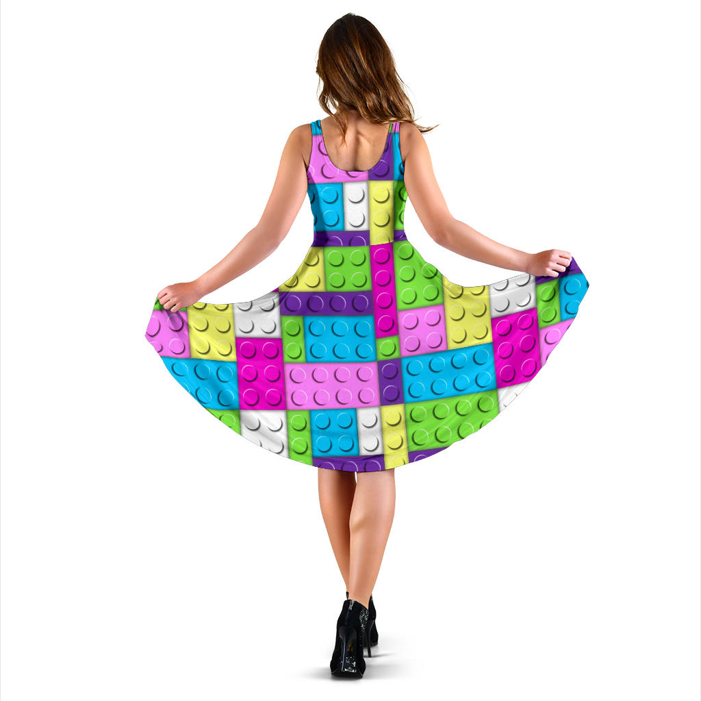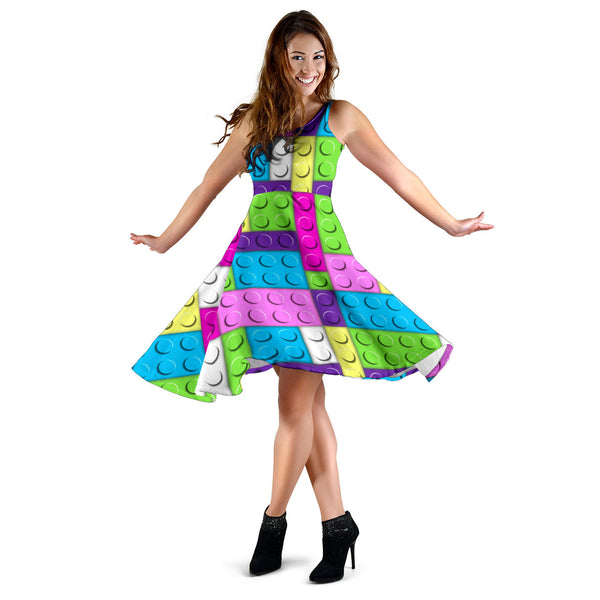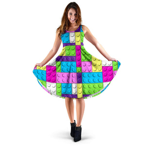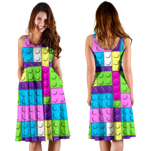Women's Dress, No Sleeves, Custom Dress, Midi Dress, Lego Building Blocks Pastel 01