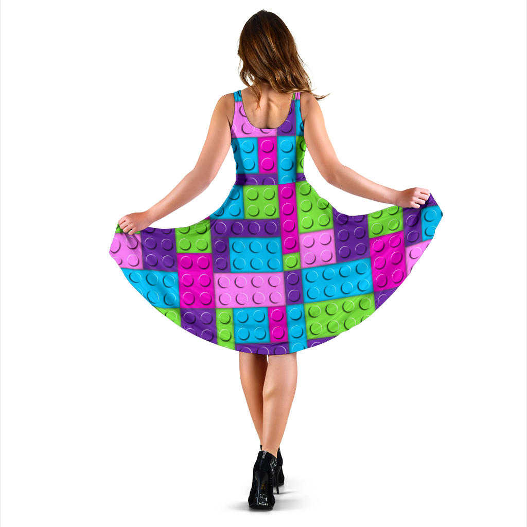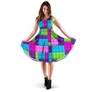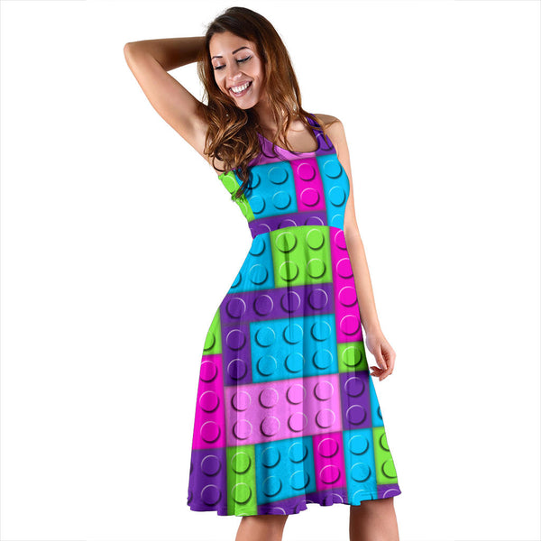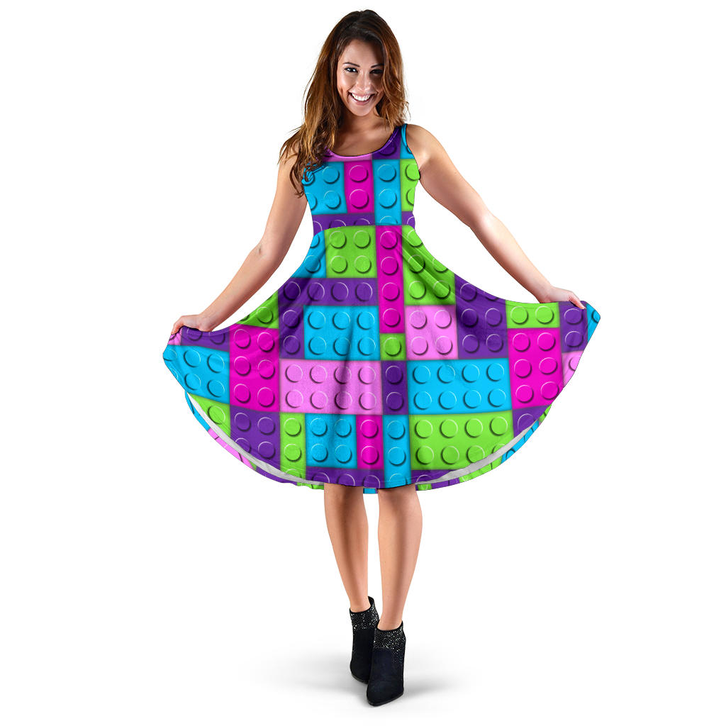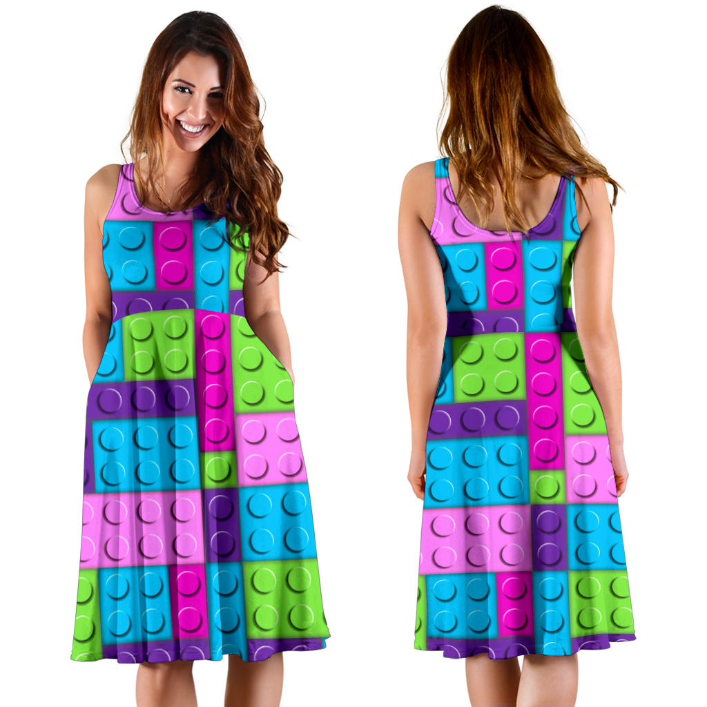 Women's Dress, No Sleeves, Custom Dress, Midi Dress, Lego Building Blocks Pastel 02
