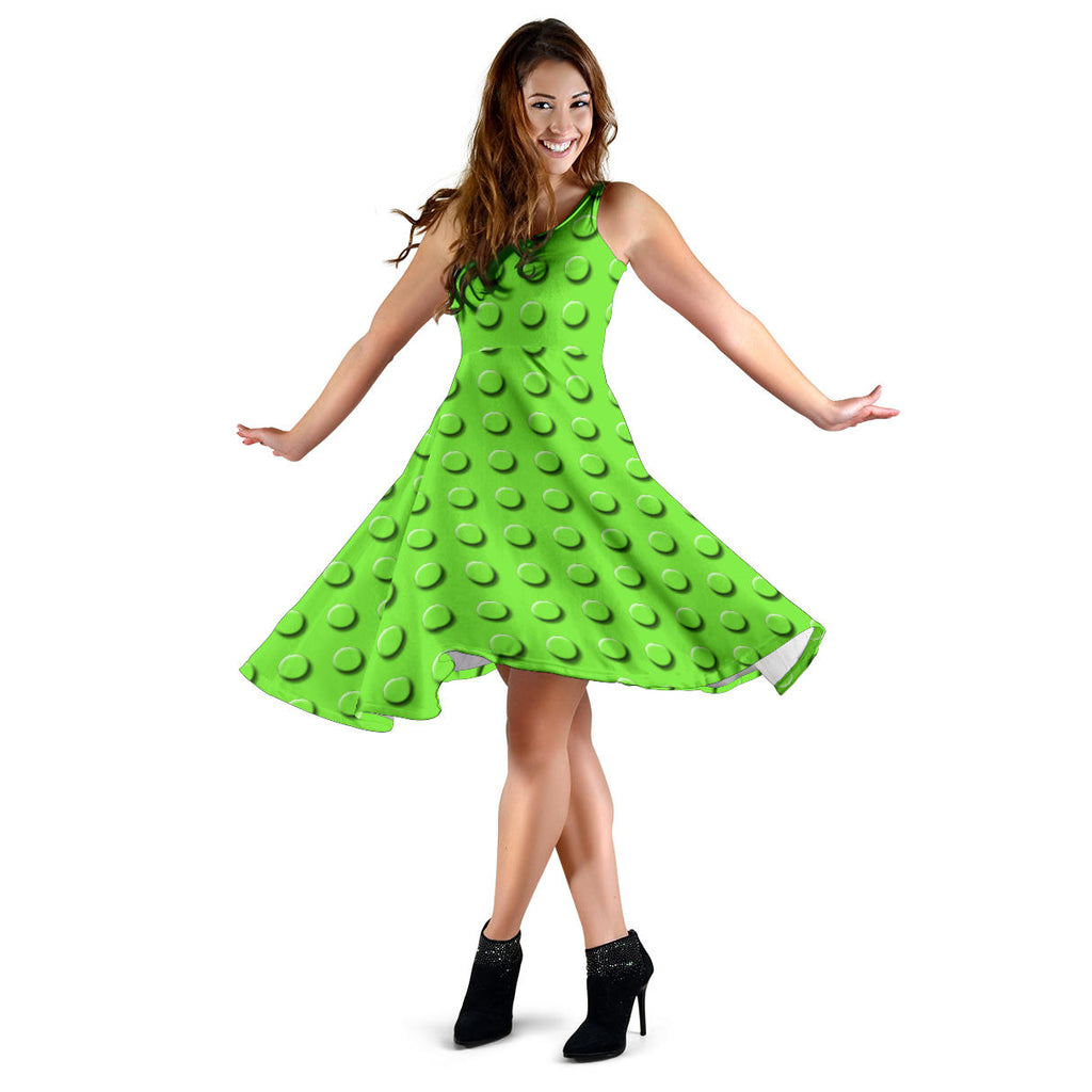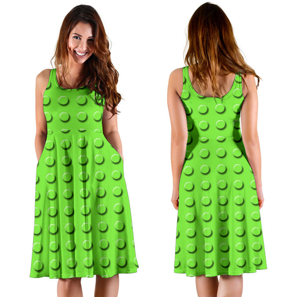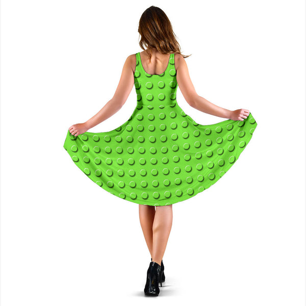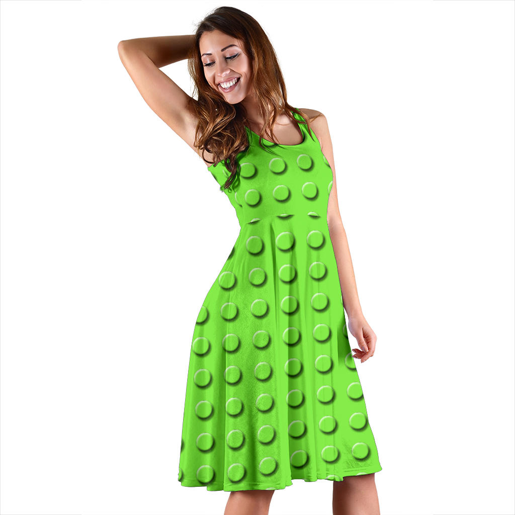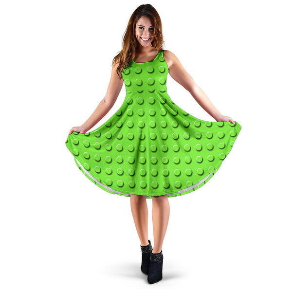 Women's Dress, No Sleeves, Custom Dress, Midi Dress, Lego Building Blocks Pastel 03