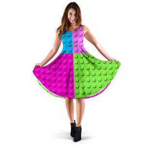 Women's Dress, No Sleeves, Custom Dress, Midi Dress, Lego Building Blocks Pastel 07