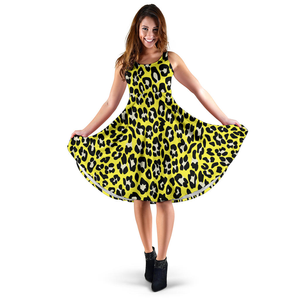 Women's Dress, No Sleeves, Custom Dress, Midi Dress, Leopard Print 05