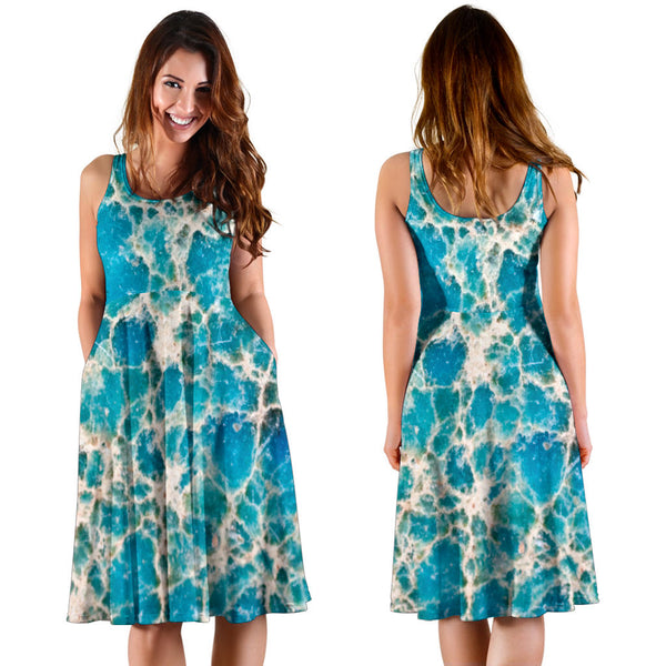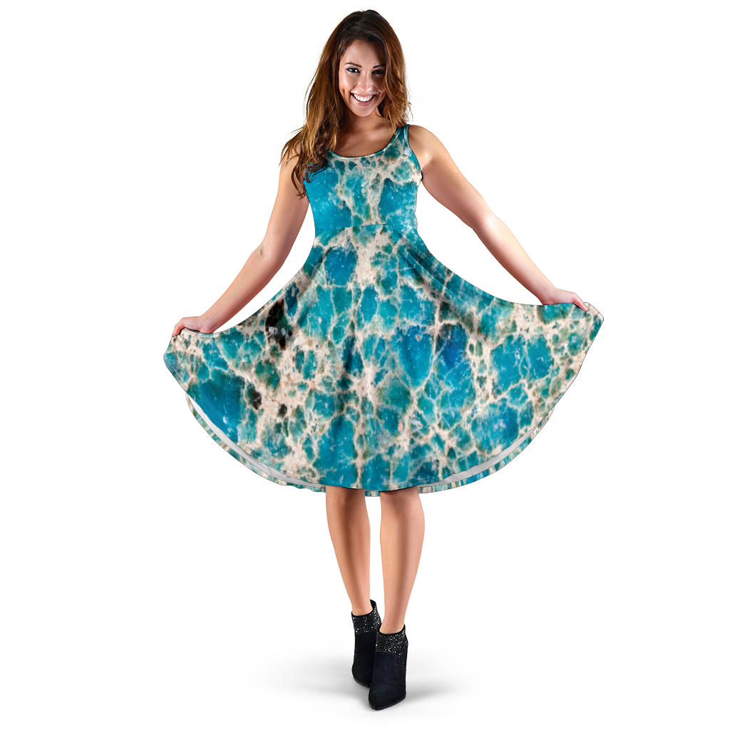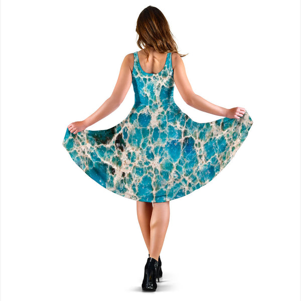Women's Dress, No Sleeves, Custom Dress, Midi Dress, Marble Dress 08