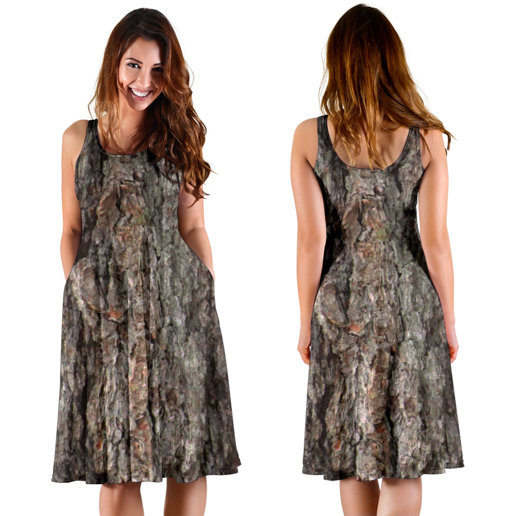 Women's Dress, No Sleeves, Custom Dress, Midi Dress, Nature 1-04