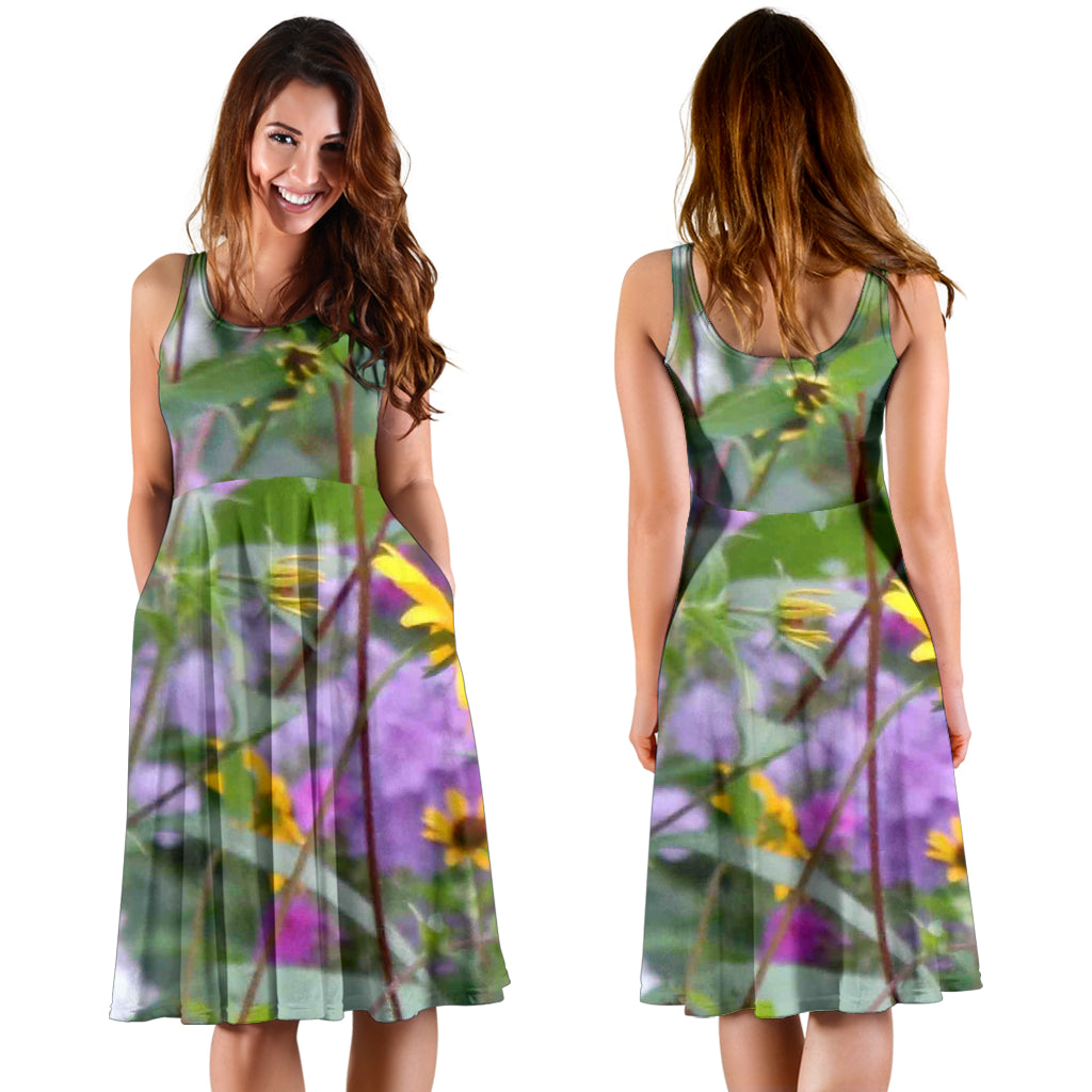 Women's Dress, No Sleeves, Custom Dress, Midi Dress, Nature 1-11