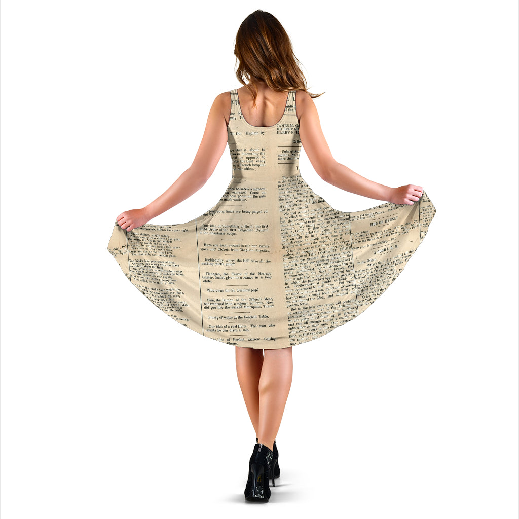 Women's Dress, No Sleeves, Custom Dress, Midi Dress, Old Newspaper 10